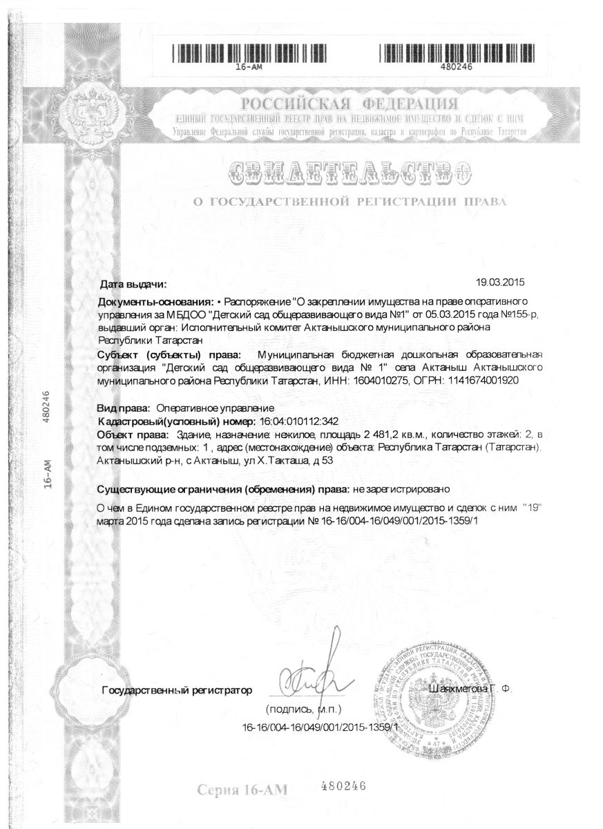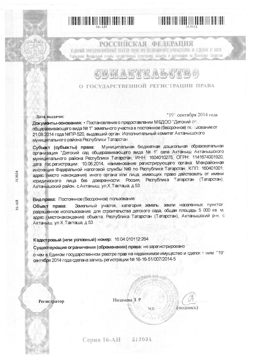 | Короткое название: | МБДОО «Детский сад общеразвивающего вида №1» с.Актаныш |