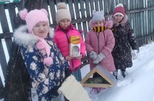 Безнең якта кышлаучы кошларның санын саклап калуга җаваплылык хисе тәрбияләүне, кошлар турында белемне тирәнәйтүне күздә тотып, кошларга кыш көне ярдәм кулы сузып, табигатькә сакчыл караш тәрбияләү, аны саклау хисе булдыру, кошларның яшәү рәвеше белән таныштыру, аларга ярдәм кирәклеген төшендерү өчен эшләнә бу эшләр.Кышлаучы кошларга ярдәм итү йөзеннән, мәктәбебезнең 2нче сыйныф укучылары төрле-төрле җимлекләр ясап элеп куйдылар. Кайсы җимлеккә нинди кошлар килүен һәрдаим күзәтеп, карап, ризык белән тулыландырып торалар.