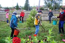 Тәҗрибә участогын корыган үләннәрдән арындырдык, чәчәк орлыкларын җыйдык, георгин бәрәңгеләрен алып урнаштырдык.