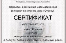 Удостоверяет, что Яппаров Ильяс ученик 4 класса участвовал в интернет- олимиаде