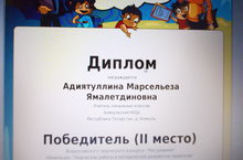 Награждается Адиятуллина М.Я. Победитель Всероссийского творческого конкурса "Рассударики" .