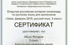 Удостоверяет, что Яппаров Ильяс участвовал в интернет- олимпиаде.