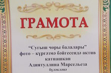 "Сугыш чоры балалары" фото- күргәзмә" бәйгесендә актив катнашкан Адиятуллина Марсельеза бүләкләнә.