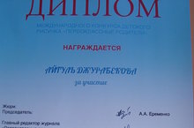 Награждается Айгуль Джурабекова, Садриева Раиля ,ученики 4 класса, за участие в международном конкурсе детского рисунка "Первоклассные родители". Педагог: Ахметзянова Н.М.