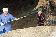 Мәктәп хезмәткәрләре Актанышбаш амбарында икмәк кабул итүдә катнаштылар. 07.08.2014