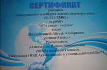 Участников Международного конкурса детских творческих работ "Моя семья" Садриевой Р.Р. и Джурабековой А.А. Руководитель Ахметзянова Н.М.