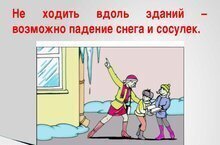 1. Обильные снегопады и потепление могут вызвать образование сосулек и сход снега с крыш зданий.