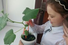 Тәрәзә төбенә утыртылган кыяр усентеләрененең төбен йомшартабыз,су сибәбез.