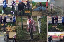 Бүген мәктәп-бакча коллективы белән дәресләрдән сон өмәгә чыктык. Үзебезнең территорияне көзге яфраклардан чистарттык.