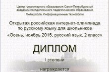 2 класс укучылары Шакирзянов Рөстәм,Шарипова Аида рус теле буенча МетаШкола Бөтенрәсәй олимпиадасында катнашып 1 дәрәҗә диплом белән бүләкләнделәр.