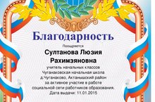 Поощряется Султанова Л.Р. за активное участие в работе социальной сети работников образования.