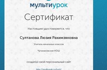 Учитель начальных классов Чуганаковской НОШ Султанова Л.Р. создала свой персональный сайт "Мультиурок".