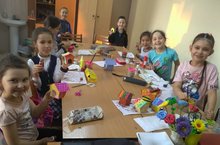 Укучылар көзге каникулларда булсалар да,Балалар иҗат үзәге балалар белән гөрләп торды.Өстәмә белем бирү педагогы Султанова Алинә Илфак кызы 7-8 яшьлек балалар белән "Иҗатта чикләр юк"дигән тема астында мастер-класс үткәрде.Балалар түгәрәктә алган белемнәрен кулланып,фантазияләрен эшкә җигеп,декоратив кош оясы моделен ясадылар.
