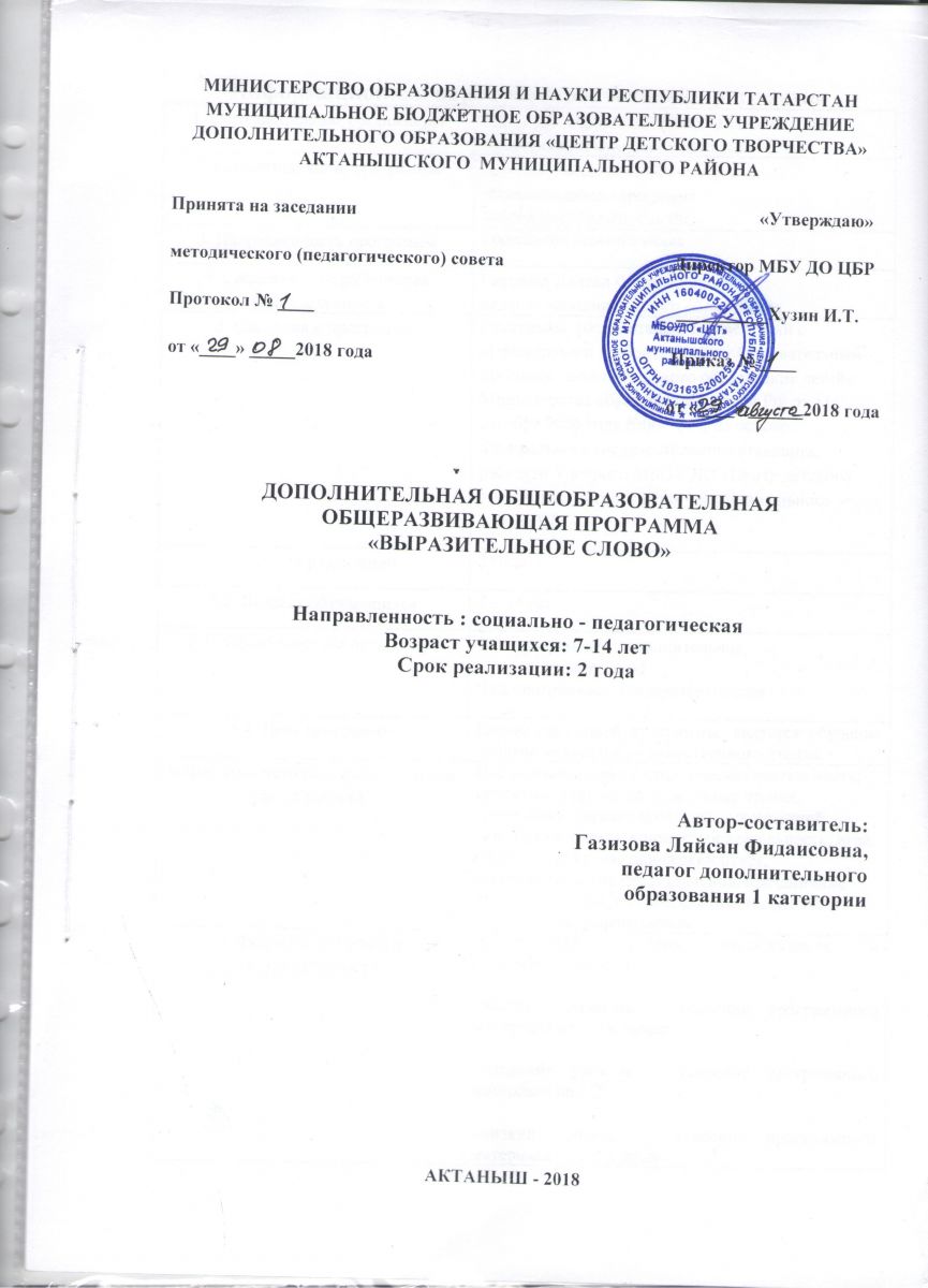 Муниципальное бюджетное образовательное учреждение дополнительного образования "Центр детского творчества" Актанышского муниципального района РТ