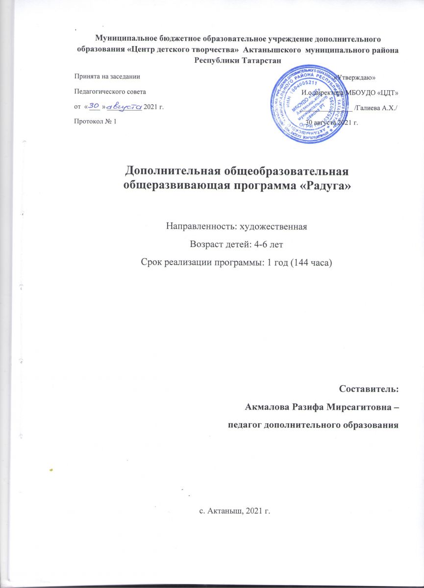 Муниципальное бюджетное образовательное учреждение дополнительного образования "Центр детского творчества" Актанышского муниципального района РТ