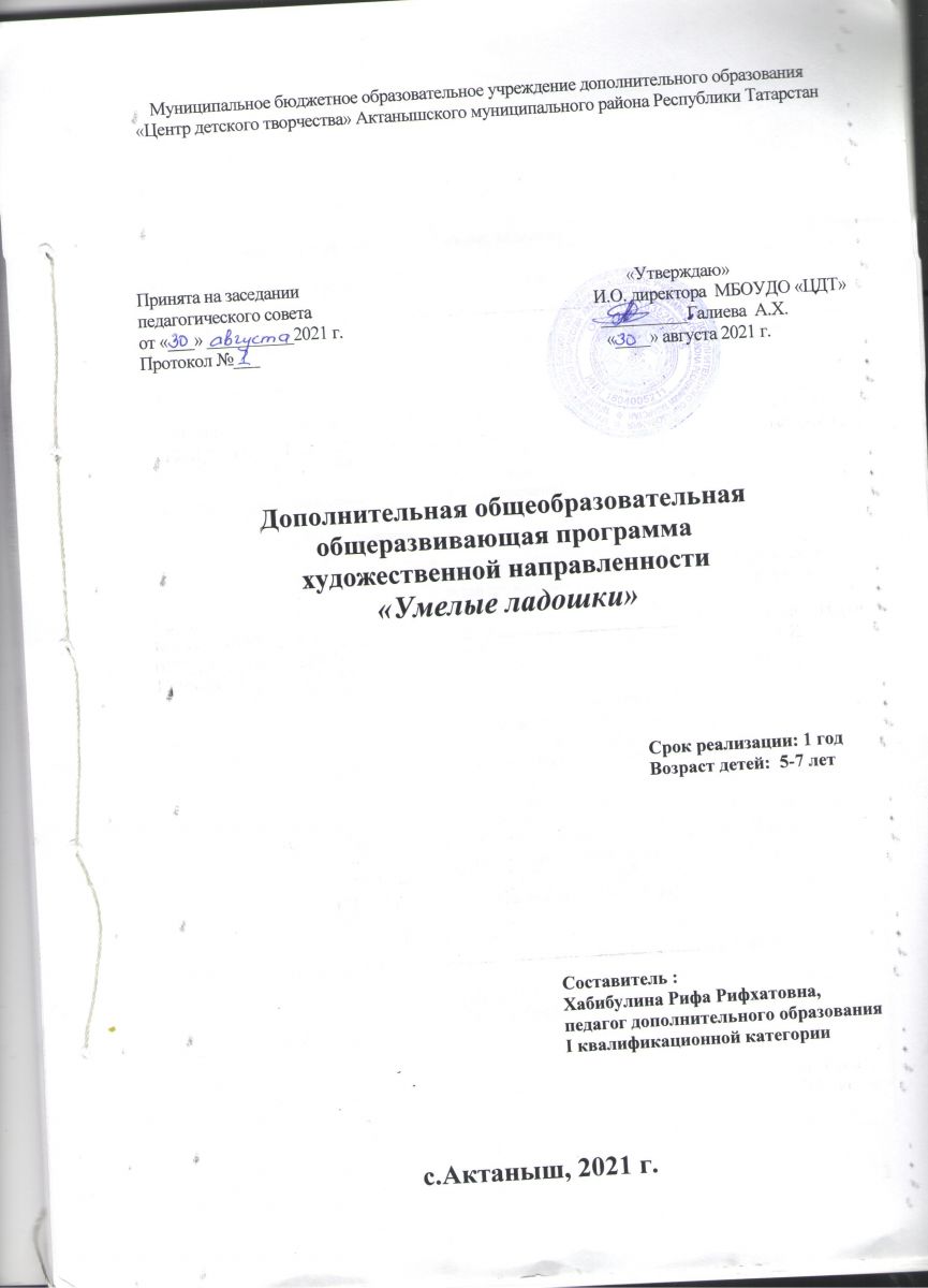 Муниципальное бюджетное образовательное учреждение дополнительного образования "Центр детского творчества" Актанышского муниципального района РТ
