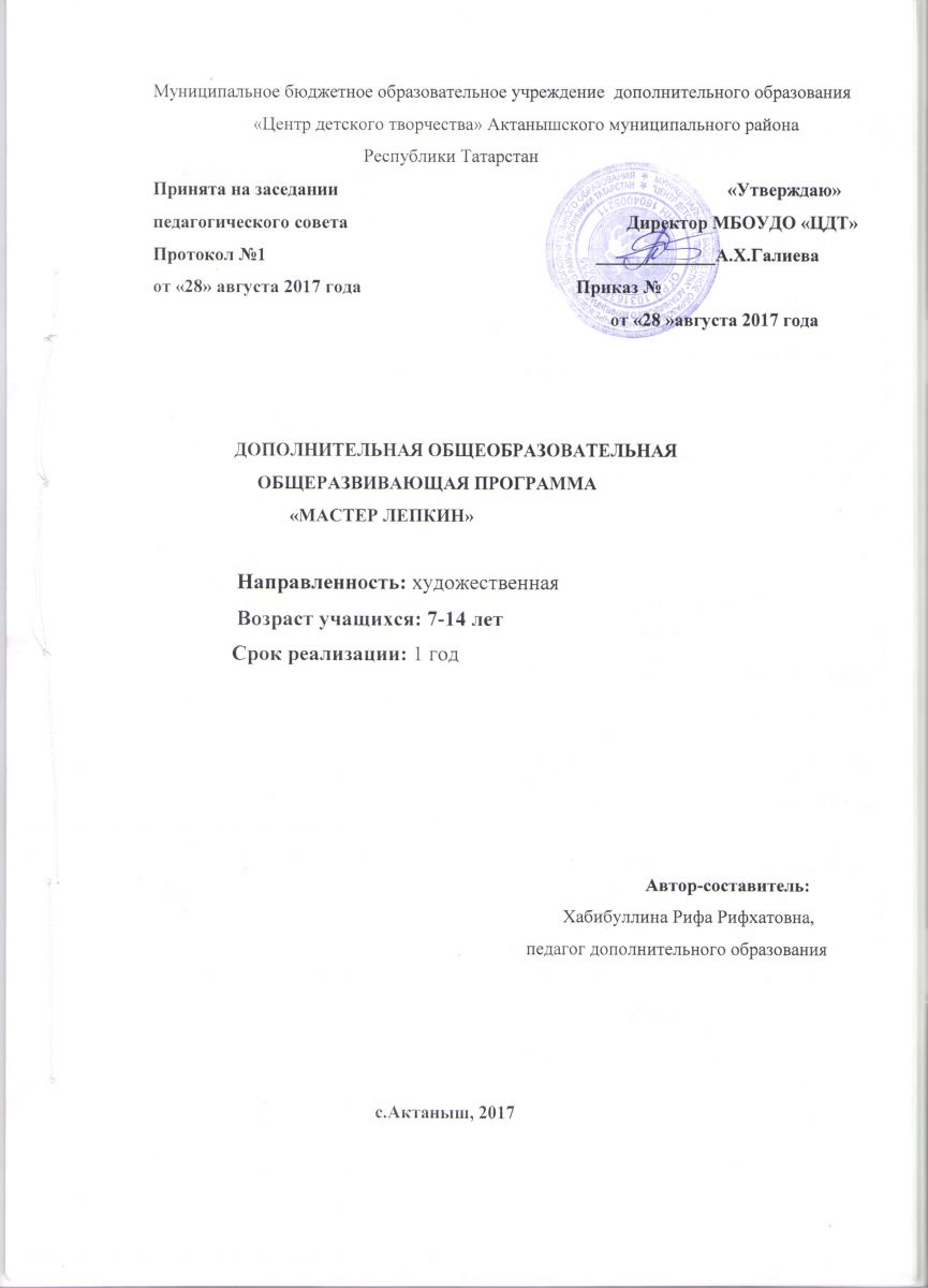 Муниципальное бюджетное образовательное учреждение дополнительного образования "Центр детского творчества" Актанышского муниципального района РТ