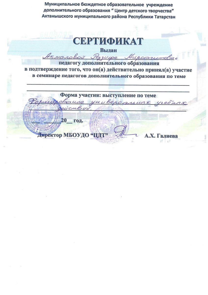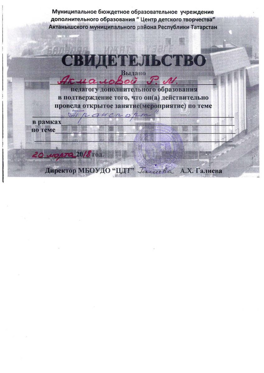 Муниципальное бюджетное образовательное учреждение дополнительного образования "Центр детского творчества" Актанышского муниципального района РТ