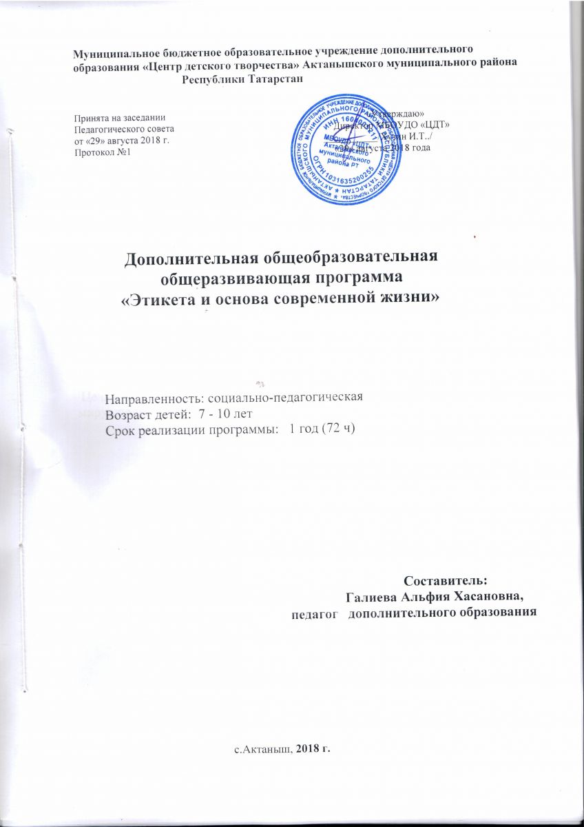 Муниципальное бюджетное образовательное учреждение дополнительного образования "Центр детского творчества" Актанышского муниципального района РТ