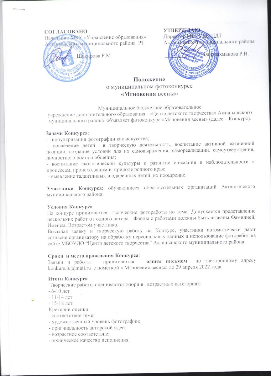 Муниципальное бюджетное образовательное учреждение дополнительного образования "Центр детского творчества" Актанышского муниципального района РТ