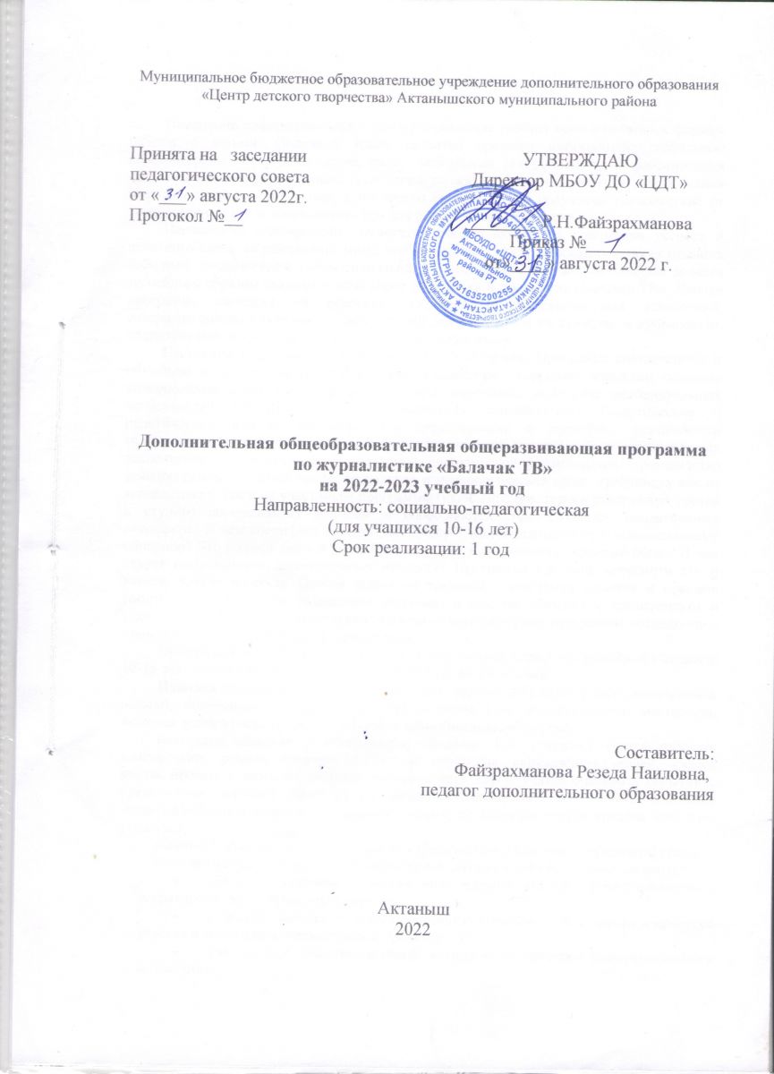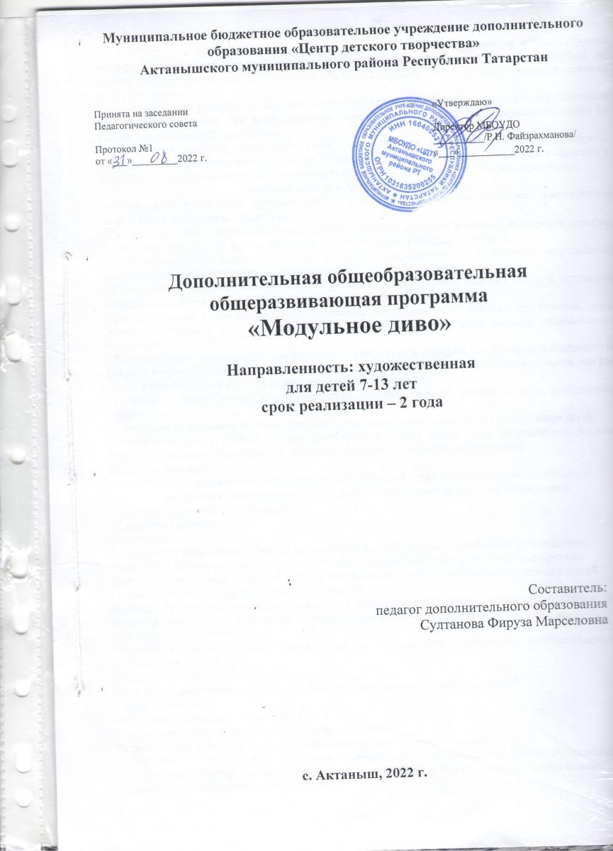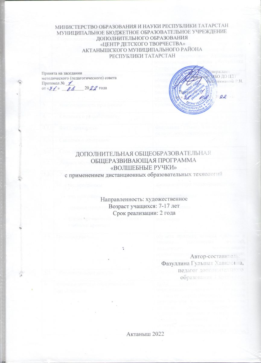 Муниципальное бюджетное образовательное учреждение дополнительного образования "Центр детского творчества" Актанышского муниципального района РТ