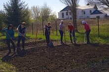 Яшелләндерү эше.\\Озеленение территории. 05.05.2023 Балалар бакчасы территориясен яшелләндерү эше дәвам итә.\\Продолжается работа по озеленению территории детского сада.