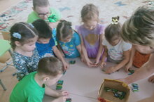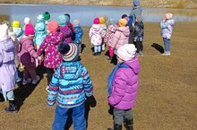 Кечкенәләр һәм уртанчылар төркеме балалары белән су буена экскурсия оештырылды. Балалар чүпләрне җыеп, су буен чистарттылар. Сулыкларны, табигатьне саклау турында балалар белән әхгәмә үткәрелде.\\ С детьми младшей и средней группы была организована экскурсия по воде. Дети собирали мусор и убирали на берегу воды. Проводились беседы с детьми об охране водоемов, природы.