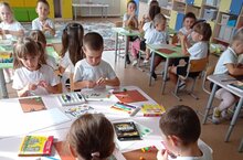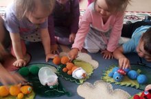 Төсләрне һәм гаилә членнарын атау, ныгыту максатыннан кечкенәләр төркеме балалары дидактик материал белән бик теләп шөгыльләнәләр.\\С целью закрепления цвета и членов семьи дети младшей группы охотно занимаются дидактическим материалом.