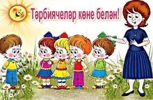 27 сентябрь — балалар бакчасы хезмәткәрләре көне.. Баланың якын дусты, сердәшчесе, тормышка беренче адымнарын ясарга ярдәм итүче мөгаллиме аерым игътибарга лаек! Хөрмәтле коллегалар! Ихлас күңелдән һөнәри бәйрәмегез белән котлыйбыз! Авыр хезмәтегездә түземлек, гаиләгездә җан тынычлыгы, тормышыгызда ак бәхетләр һәм сәламәтлек телибез! Барлык балаларыгыз да тәүфиклы, акыллы булсыннар!\\27 сентября — День работников дошкольного образования. Особого внимания заслуживает учитель, который является близким другом, соратником ребенка, помогает ему делать первые шаги в жизни! Уважаемые коллеги! От всей души поздравляем вас с профессиональным праздником! Желаем вам терпения в вашем нелегком труде, душевного спокойствия в семье, счастья и здоровья в вашей жизни! Пусть все ваши дети будут благоразумны и мудры.
