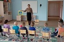 Икенче кечкенэлэр торкеме балалары юл йору кагыйдэлэрен ойрэну булмэсендэ "Светофор" уенын уйнадылар, юл билгелэре белэн таныштылар.// Дети второй младшей группы в кабинете ПДД играли в игру "Светофор", познакомились с дорожными знаками.