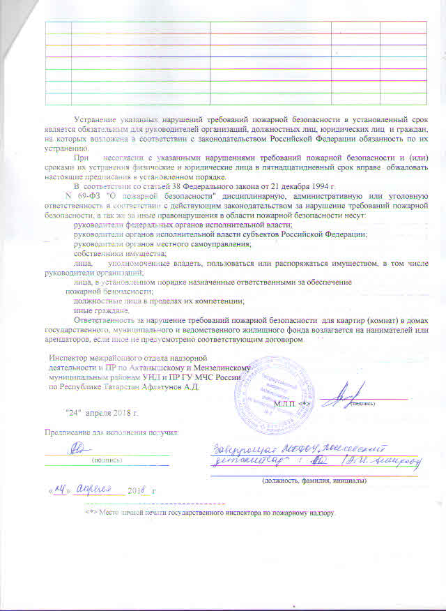 Предписание № 16/1/1 об устранении нарушений требований пожарной безопасности-лист 2