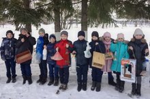 Башлангыч класс укучылары әти-әниләре белән берлектә кошларга жимлекләр ясадылар. Укучылар кошларны күзәтеп җимлекне һәрдаим тулыландырып торалар.