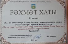 2022 ел нәтиҗәләре буенча база мәктәпләре арасында, безнең мәктәп югары күрсәткечләргә ирешеп, җиңү яулады - III дәрәҗәгә ия булды.