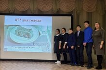 В рамках Всероссийской акции "Блокадный хлеб" учащиеся 8А класса посмотрели фильм В.Потапова "Крик тишины". После классный руководитель Г.А.Зарипова на классном часе рассказала как выглядел блокадный хлеб, какие нормы были у ленинградцев. Дальше она остановилась на том, как прокладывали дорогу жизни по льдам Ладожского озера, рассказала, как по ней в осаждённый Ленинград доставляли пшеницу для хлеба и как бойцы Красной Армии и воздушного и морского флота защищали эти 30 километров. Классный час закончился минутой молчания.
