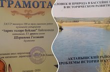 Гульшат Ахметшаеховна Шарипова учитель истории заняла второе место в конкурсе "Тарих эзләре буйлап" посвященный к 100 летию образования ТАССР и награждается грамотой и книгой "Человек и природа в бассейне реки Ик в историческом развитии".