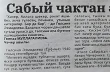 На 47 номере газеты "Актаныш таңнары" опубликовано статья "Сабый чактан әтисез калган" учителя татарского языка и литературы Гульназ Кашафовна Муллагалиевой.