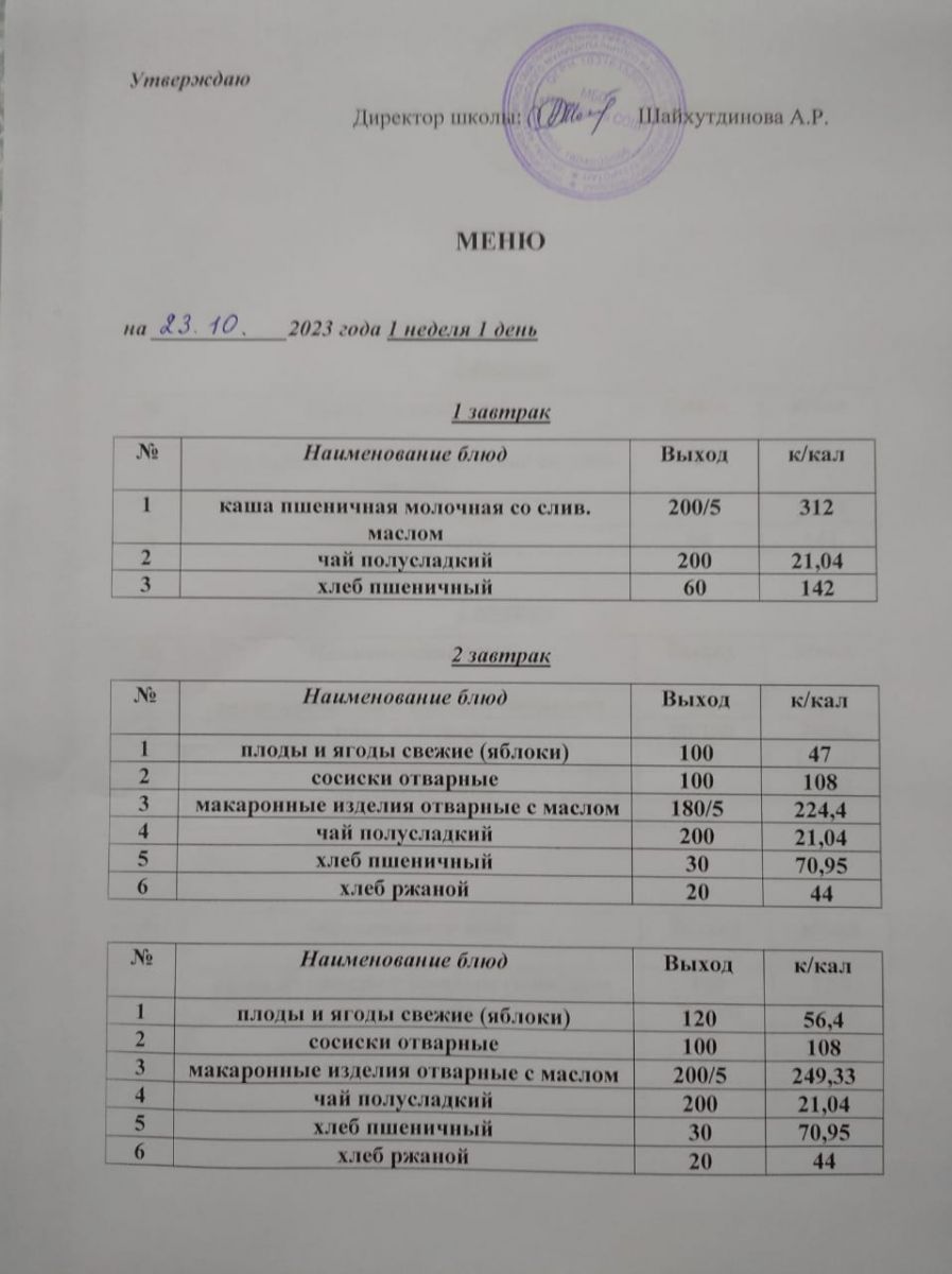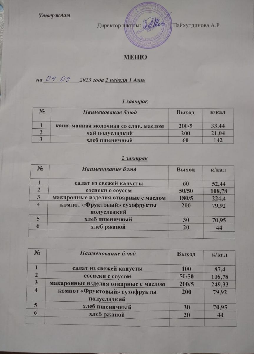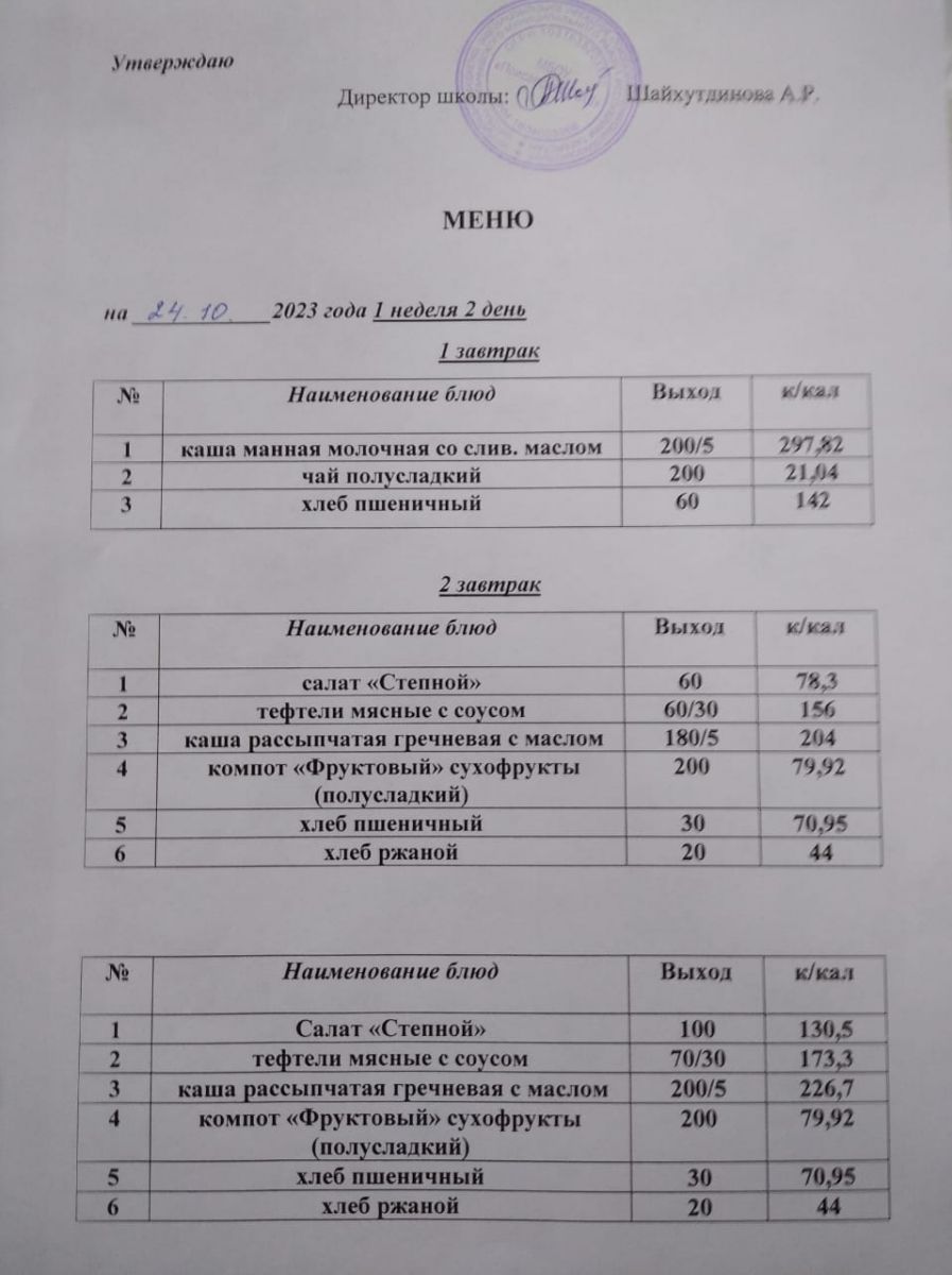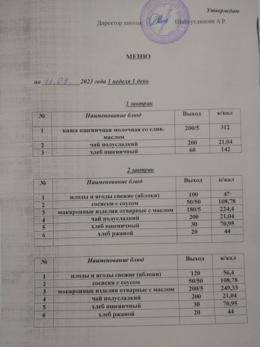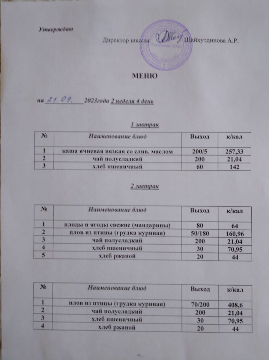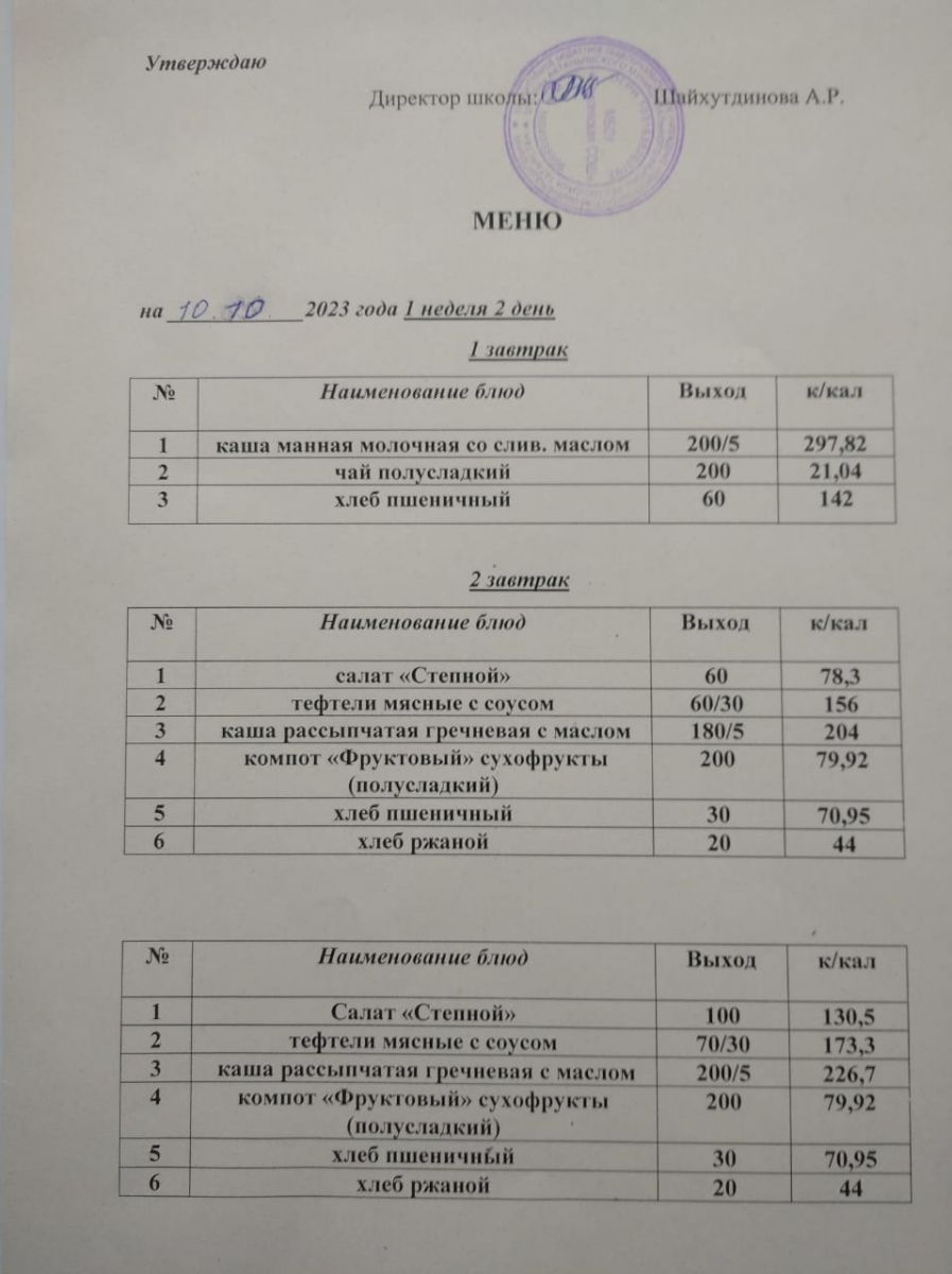 Ежедневное меню/Көндәлек меню