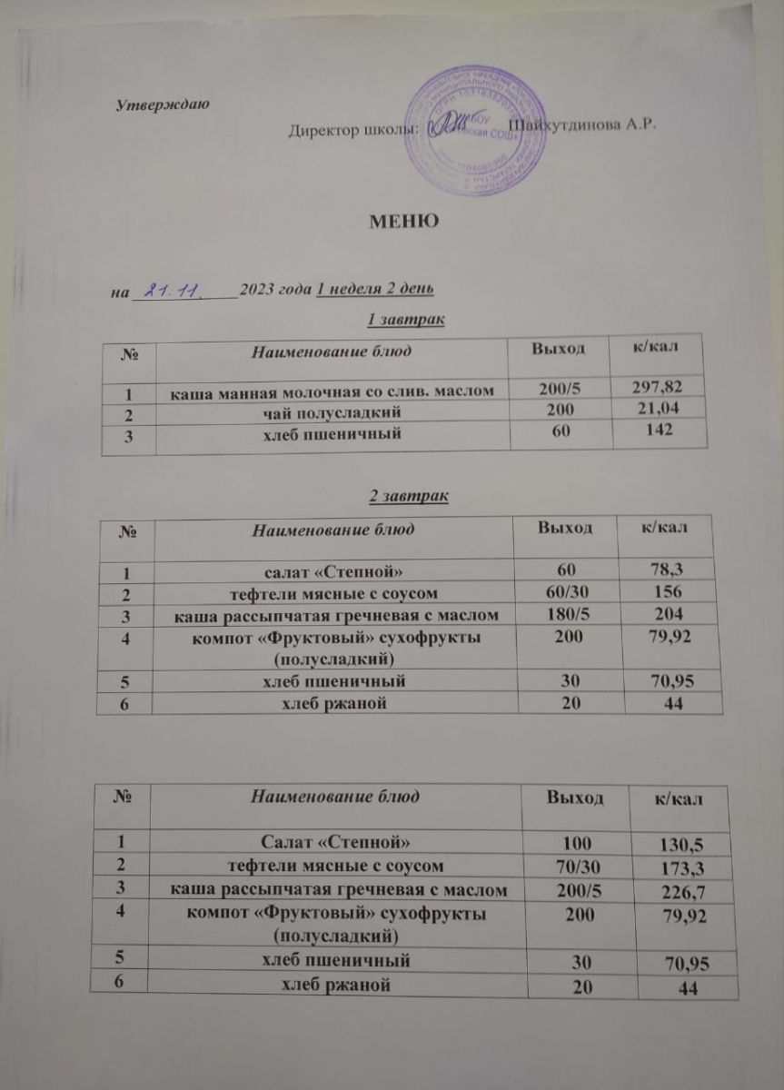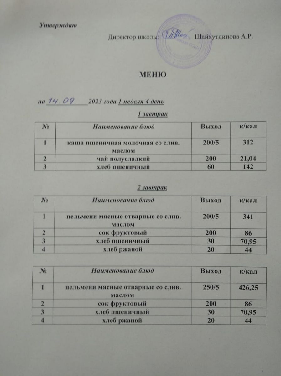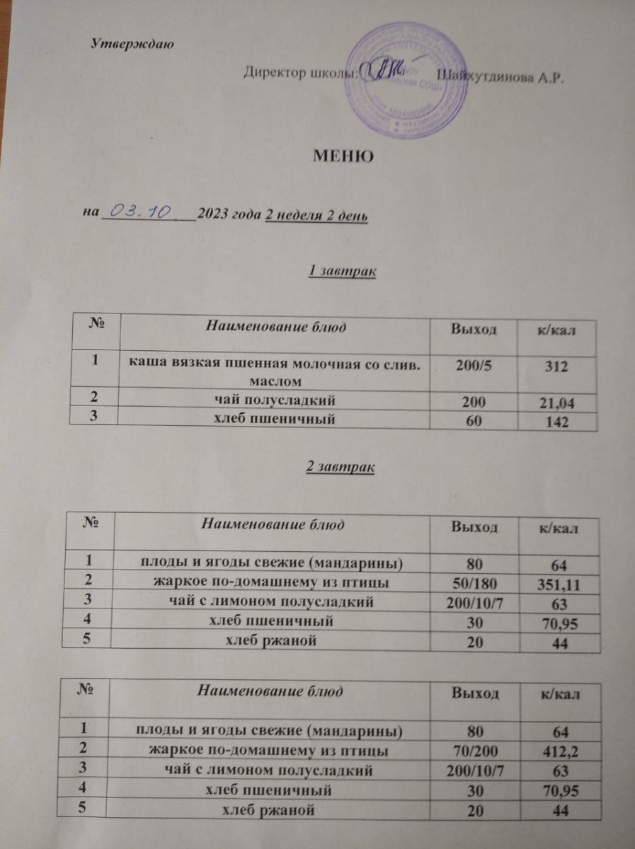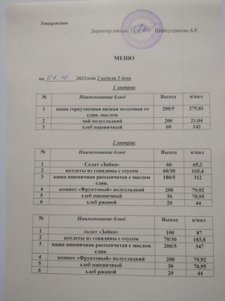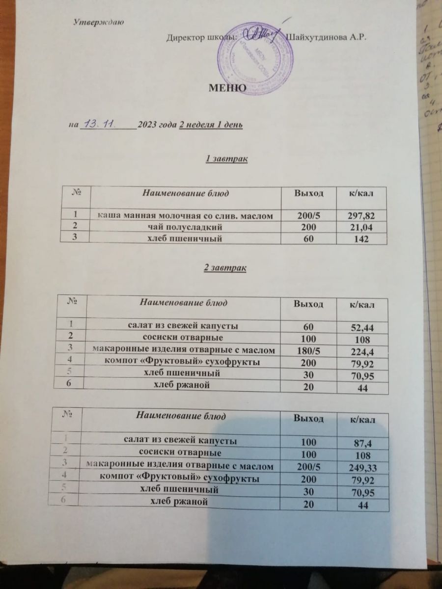 Ежедневное меню/Көндәлек меню