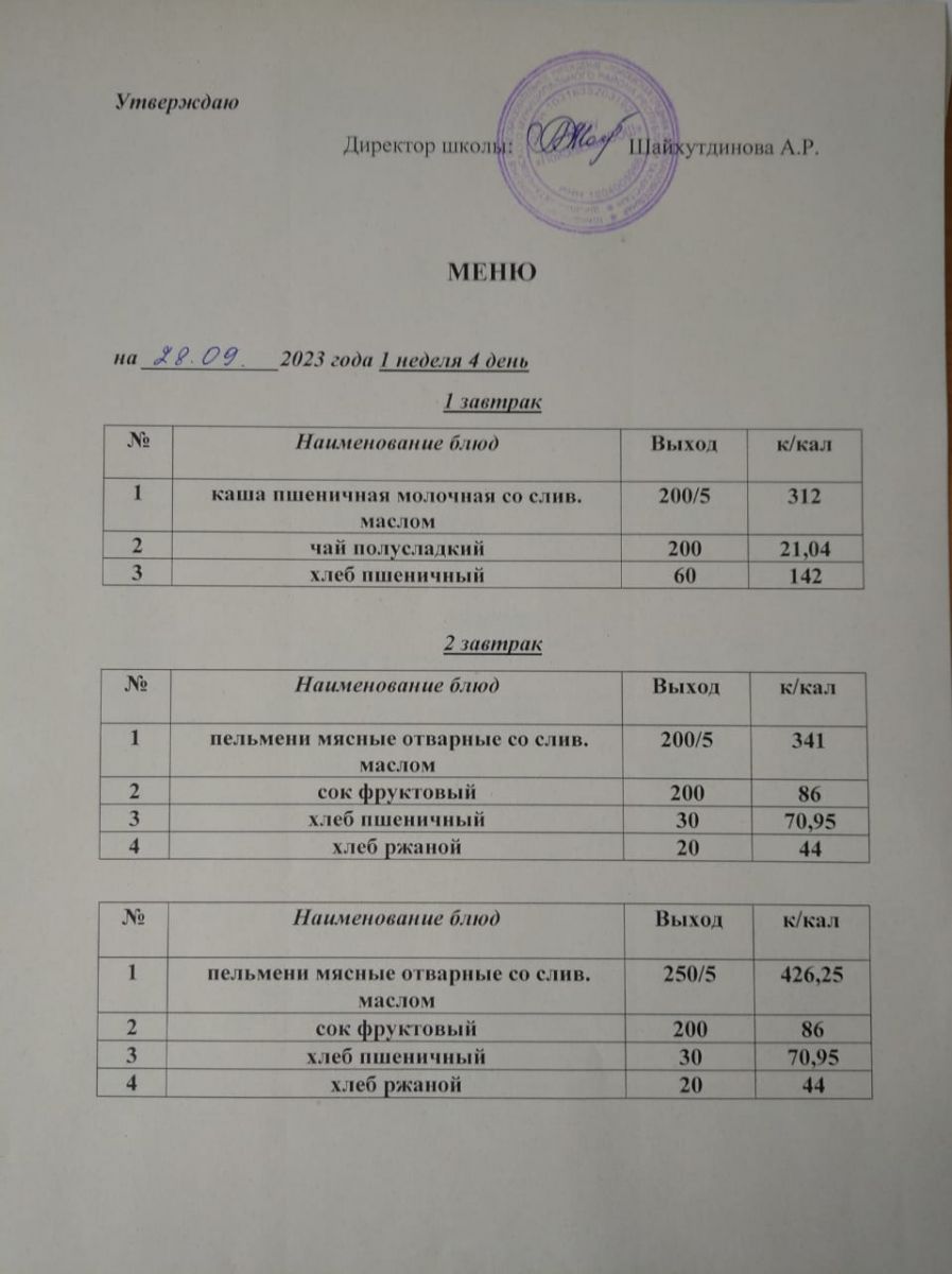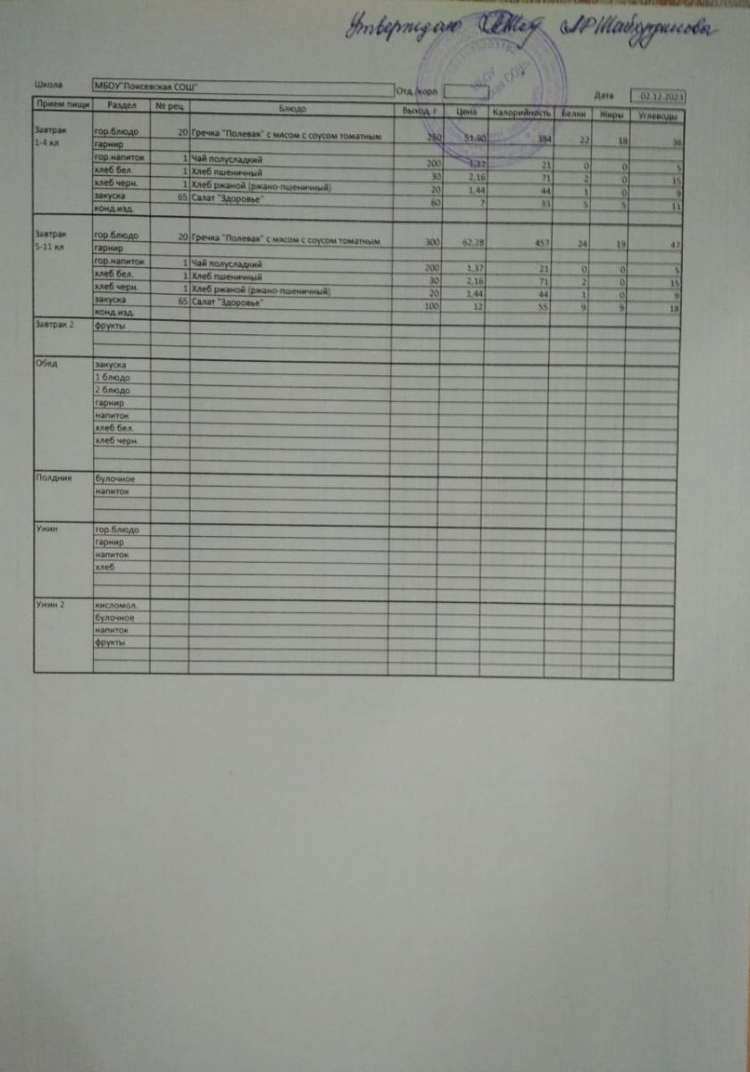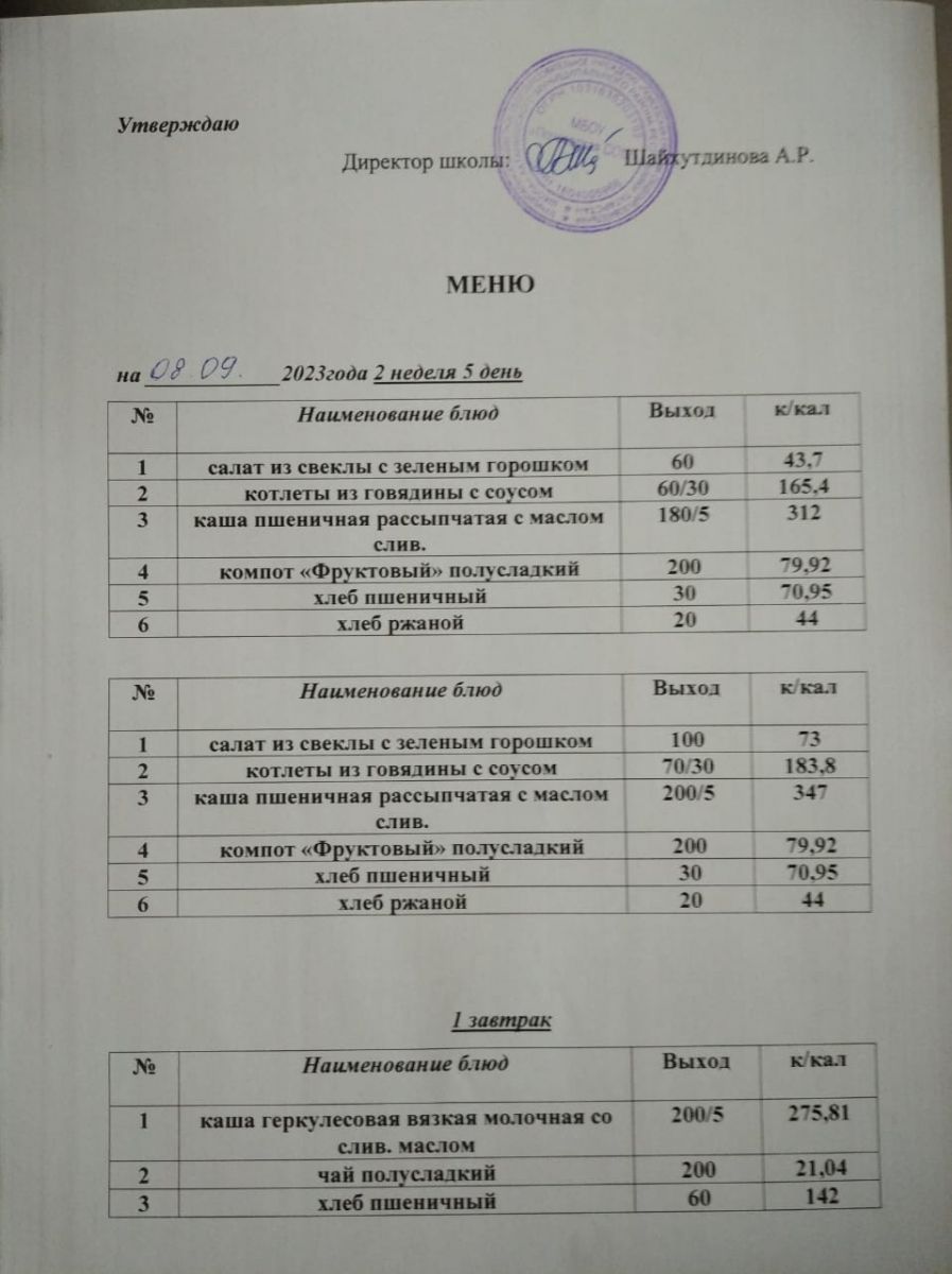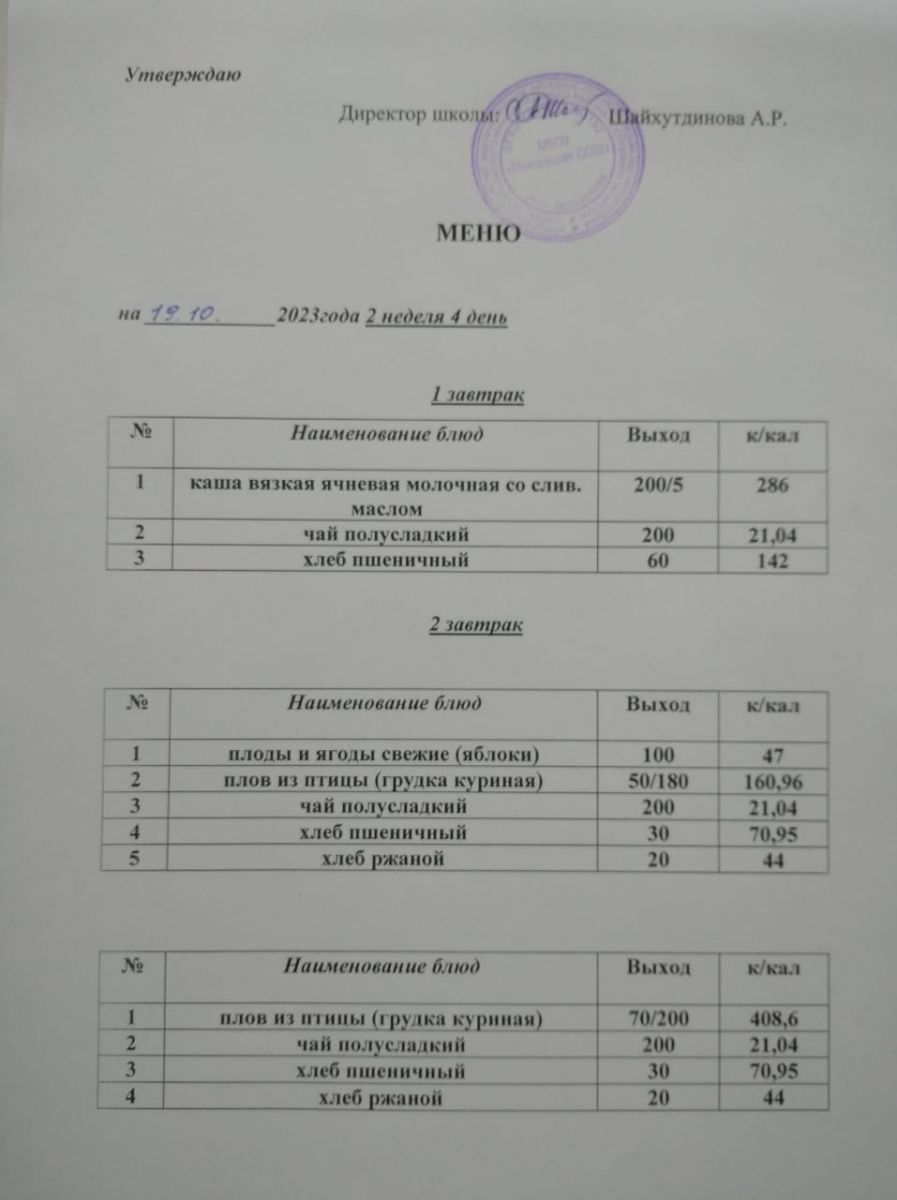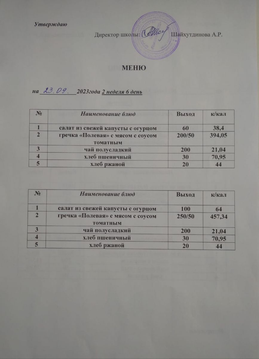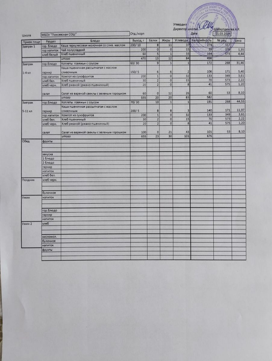 Ежедневное меню/Көндәлек меню