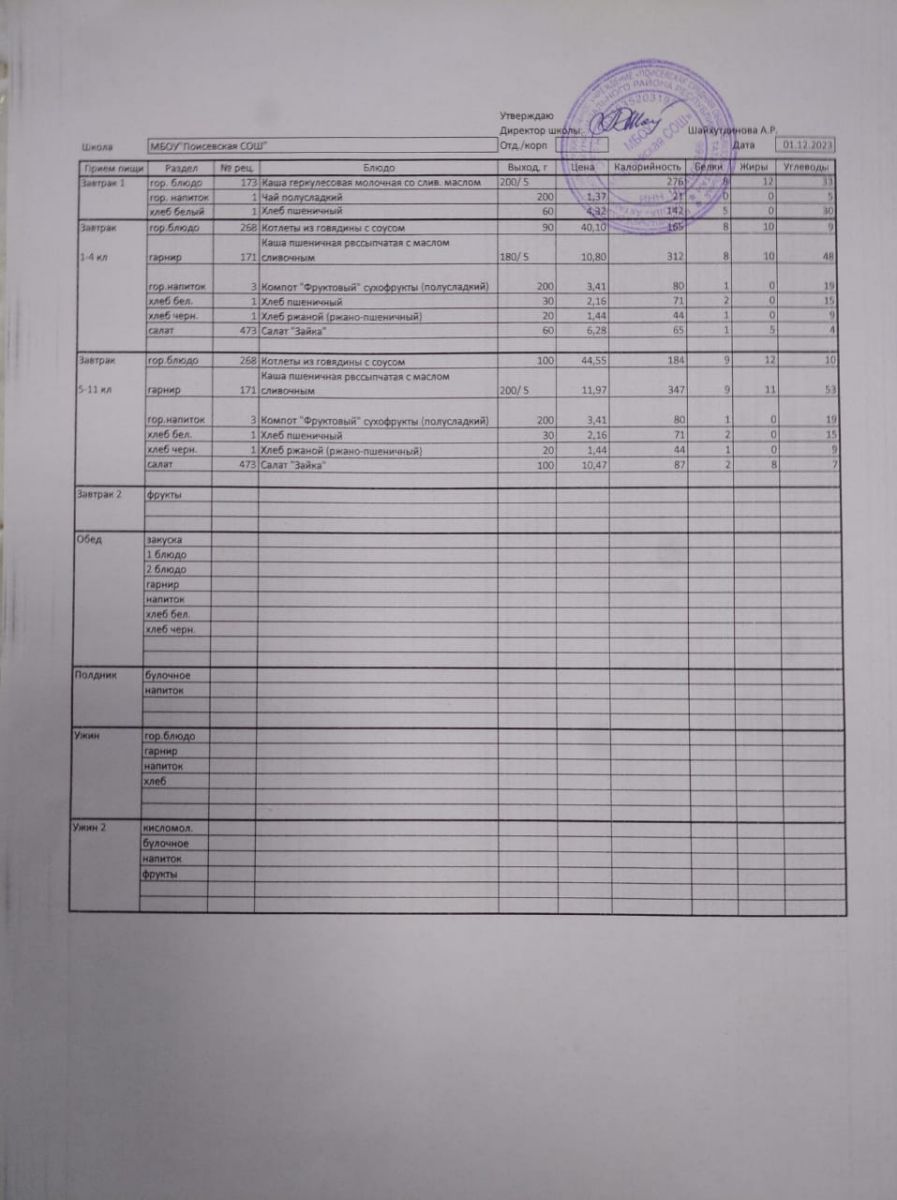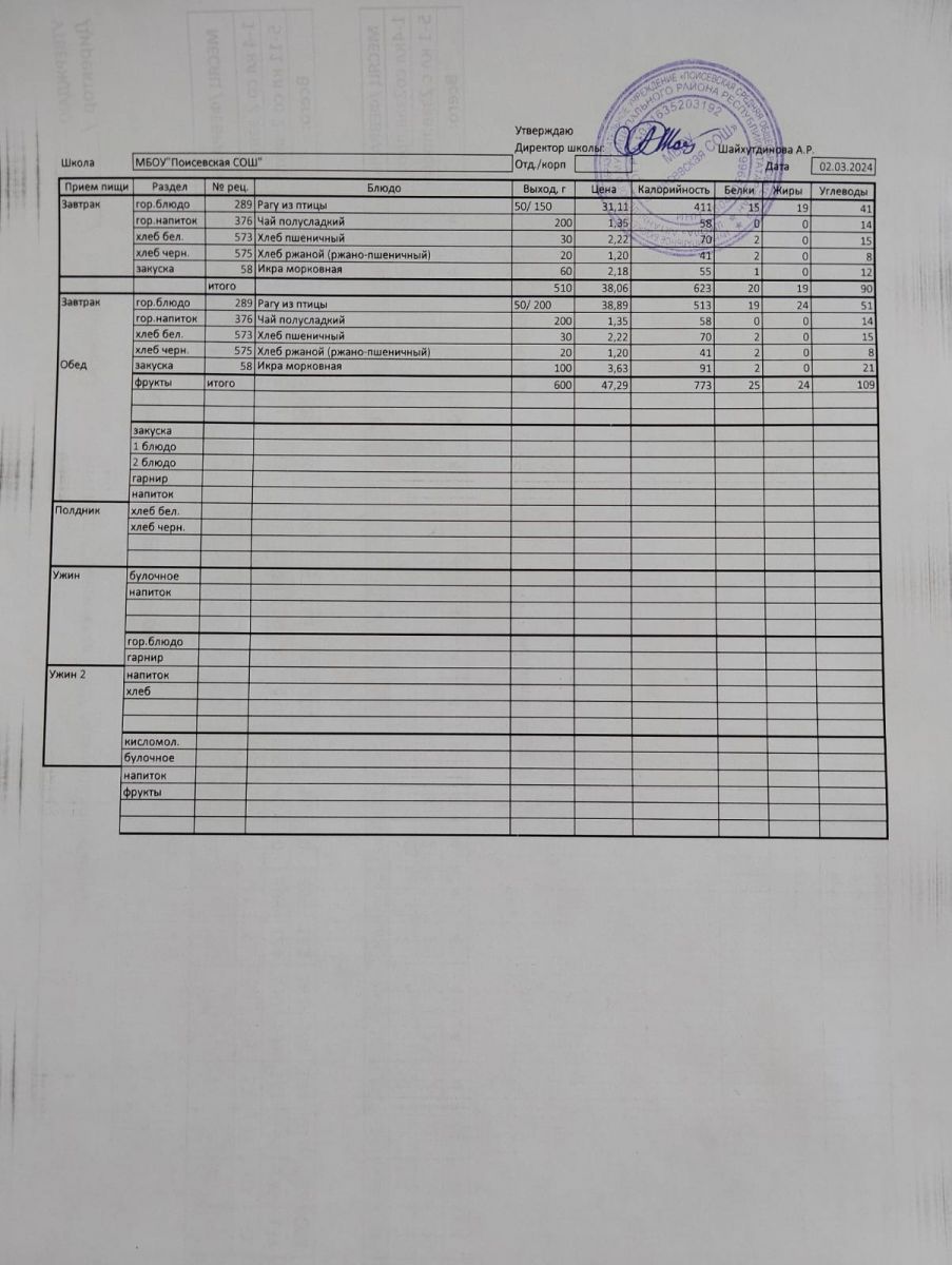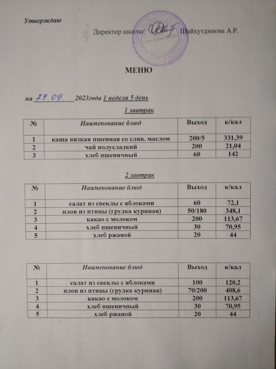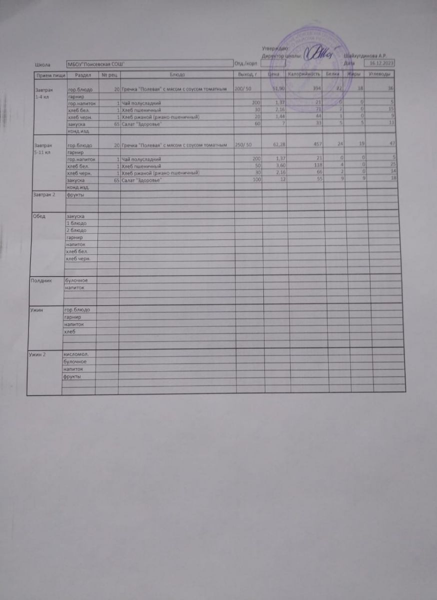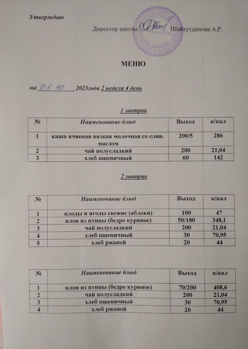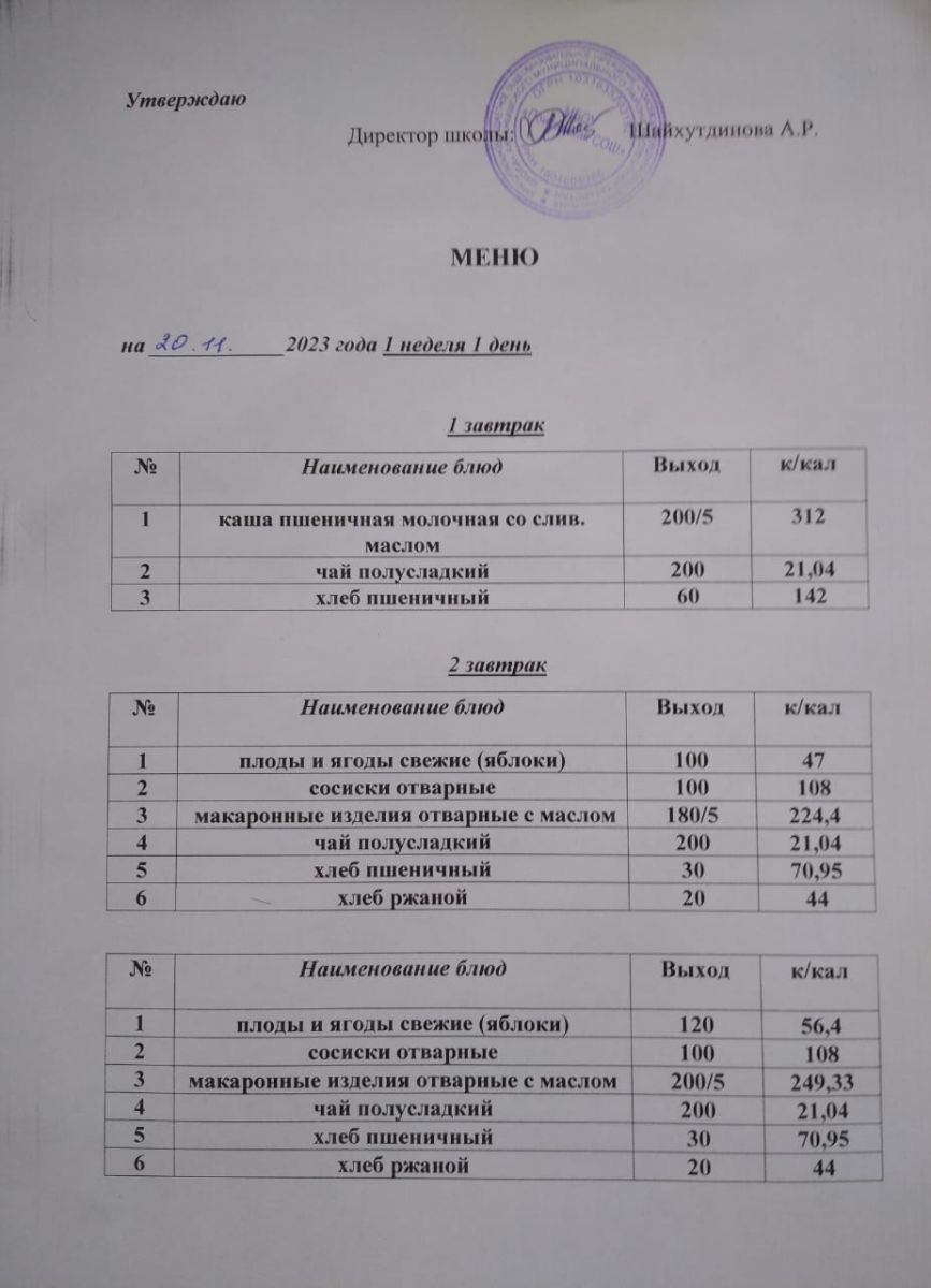 Ежедневное меню/Көндәлек меню