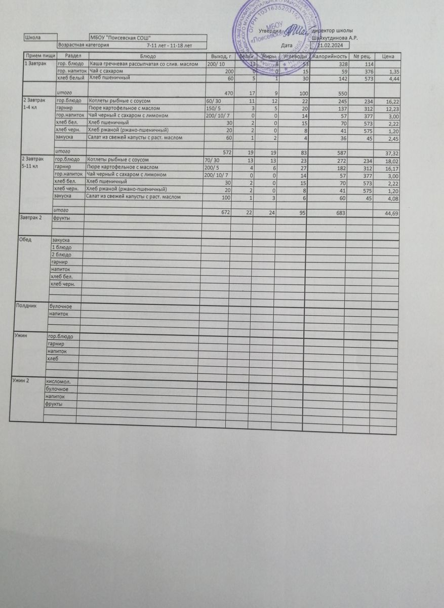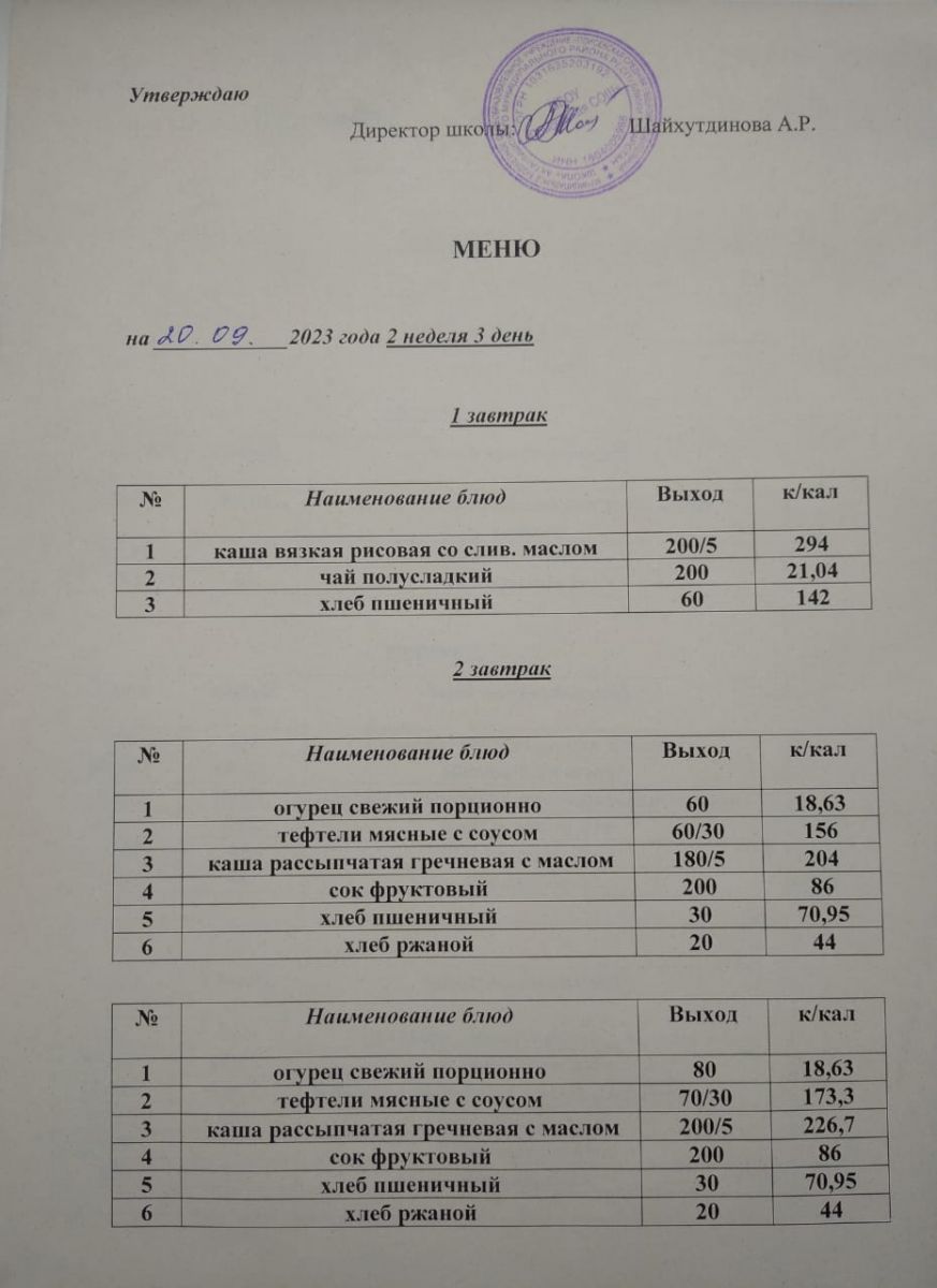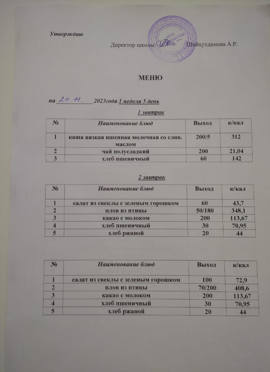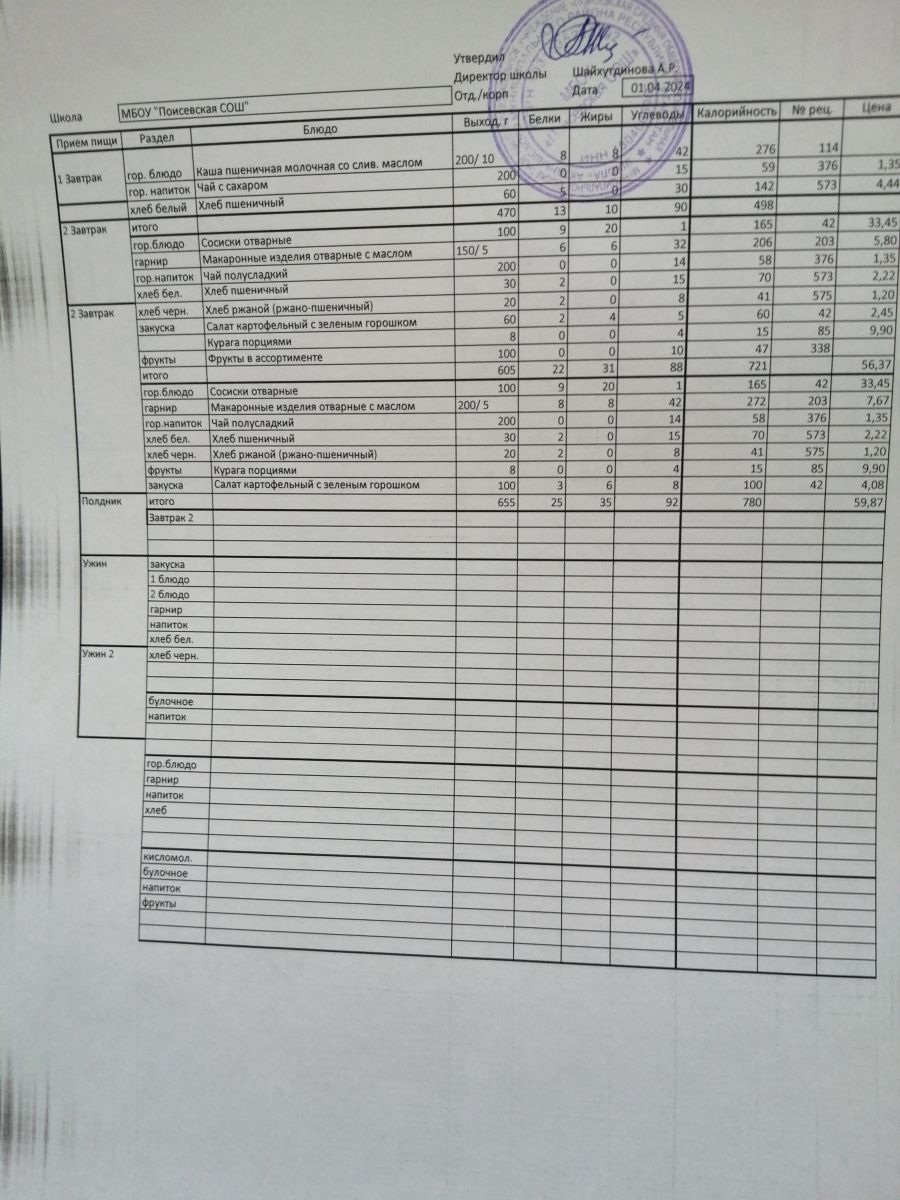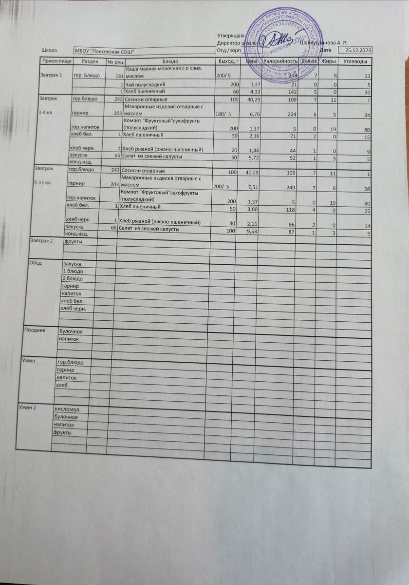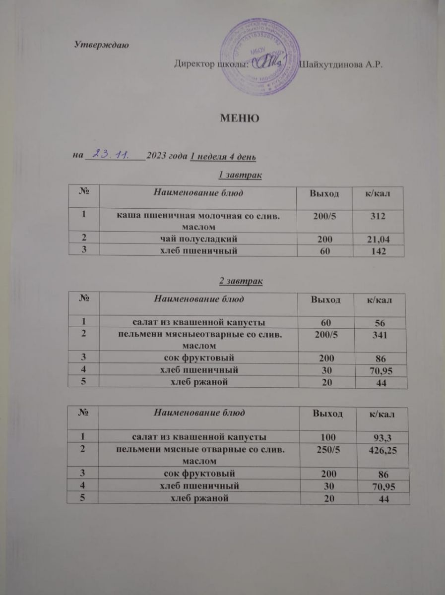 Ежедневное меню/Көндәлек меню