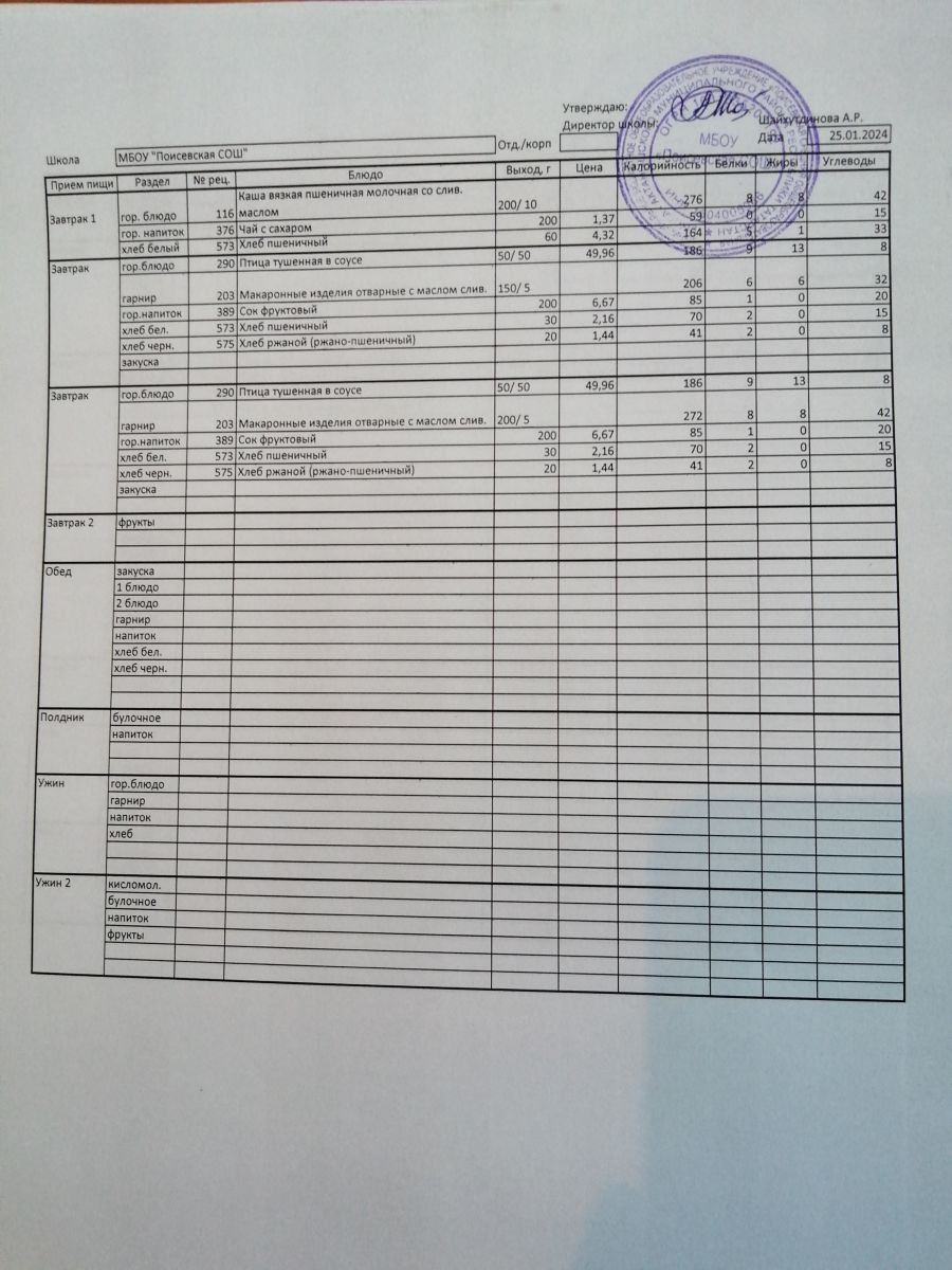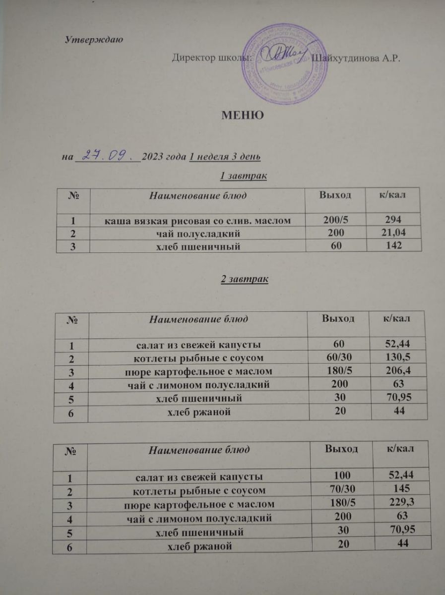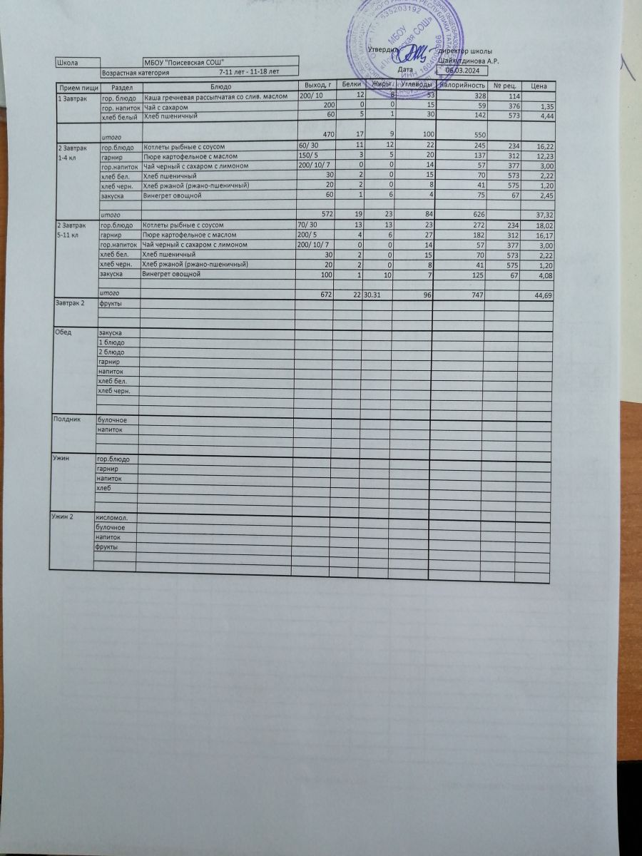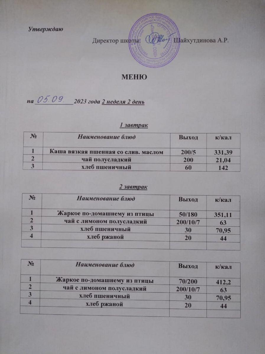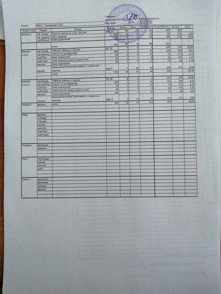 Ежедневное меню/Көндәлек меню