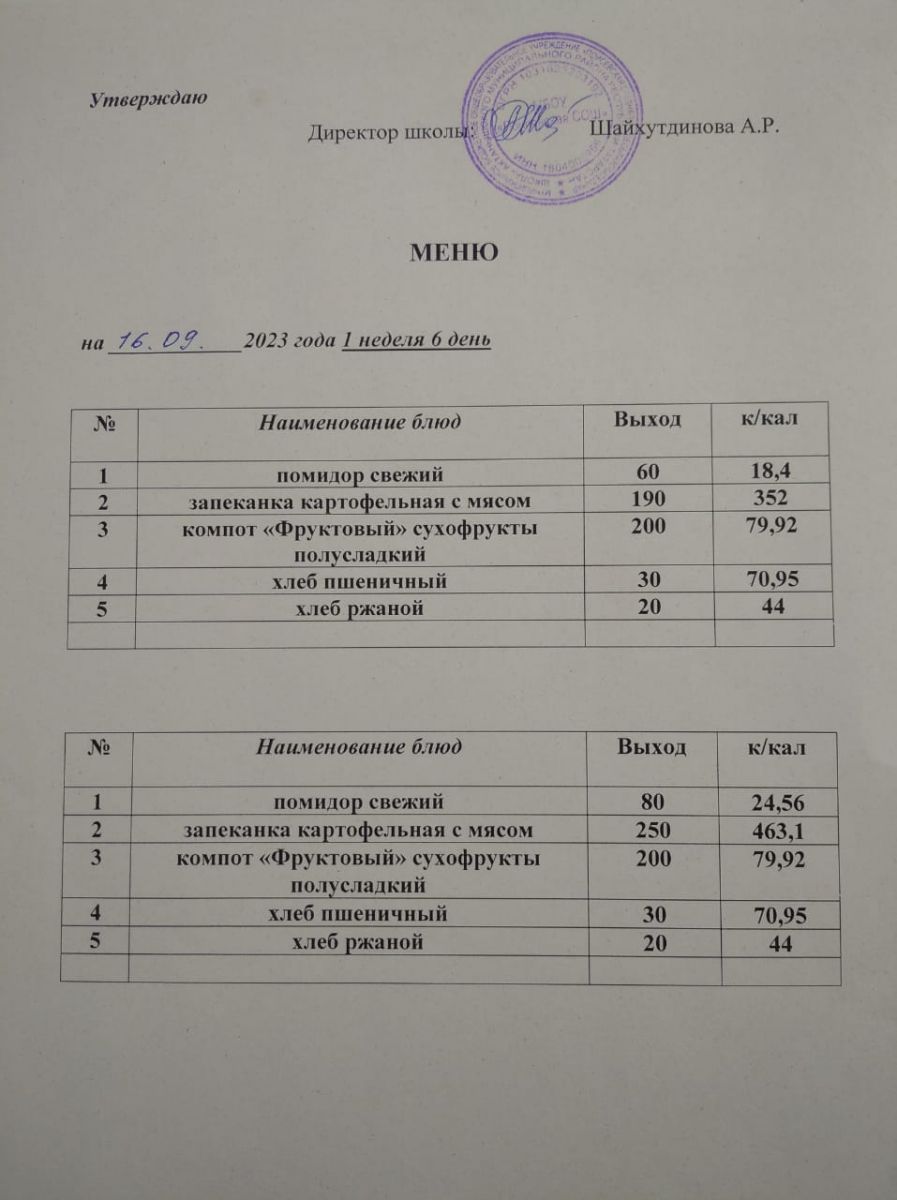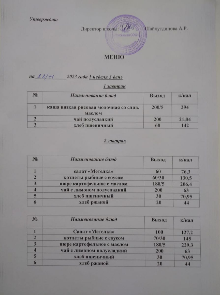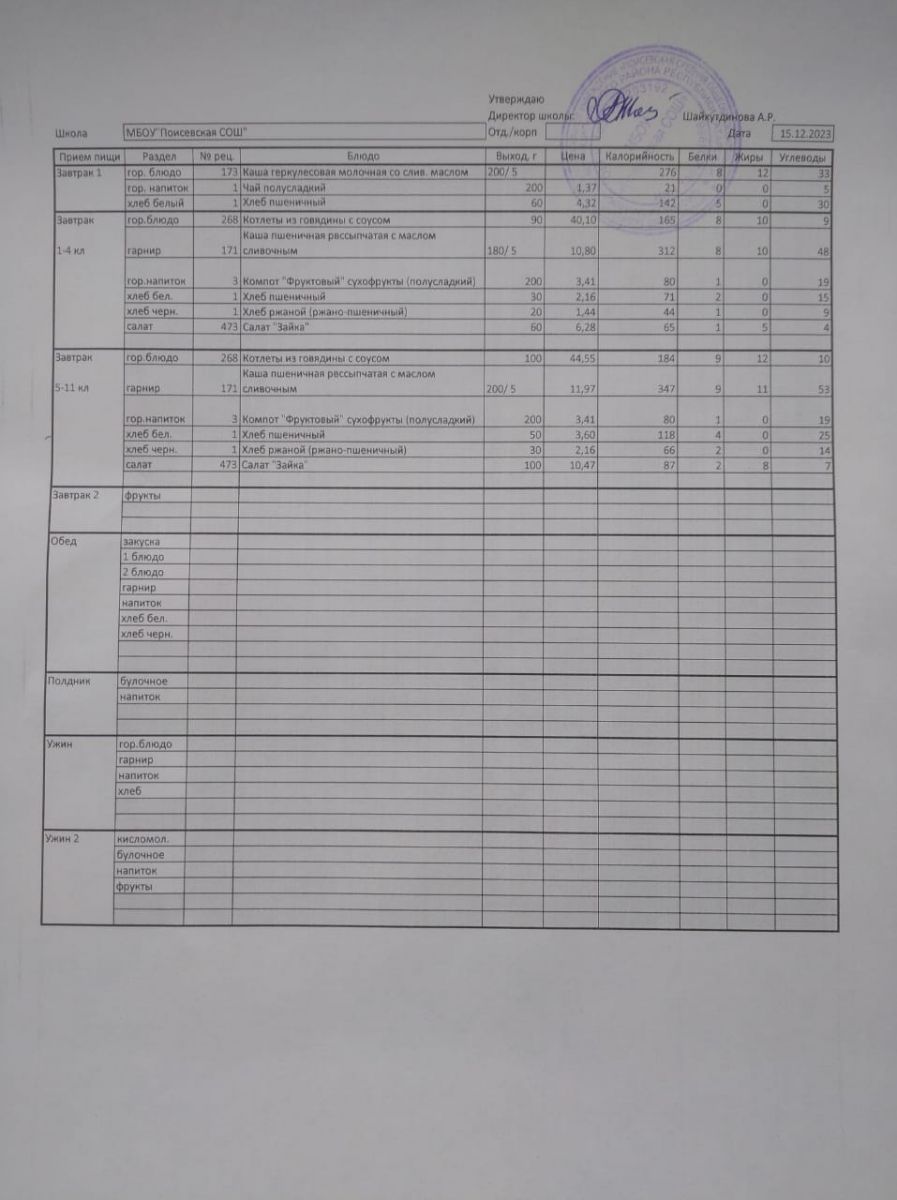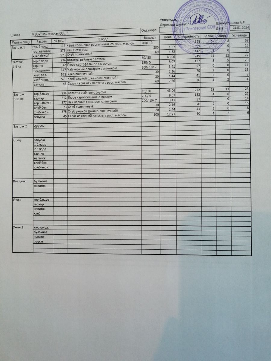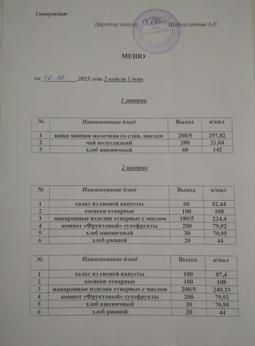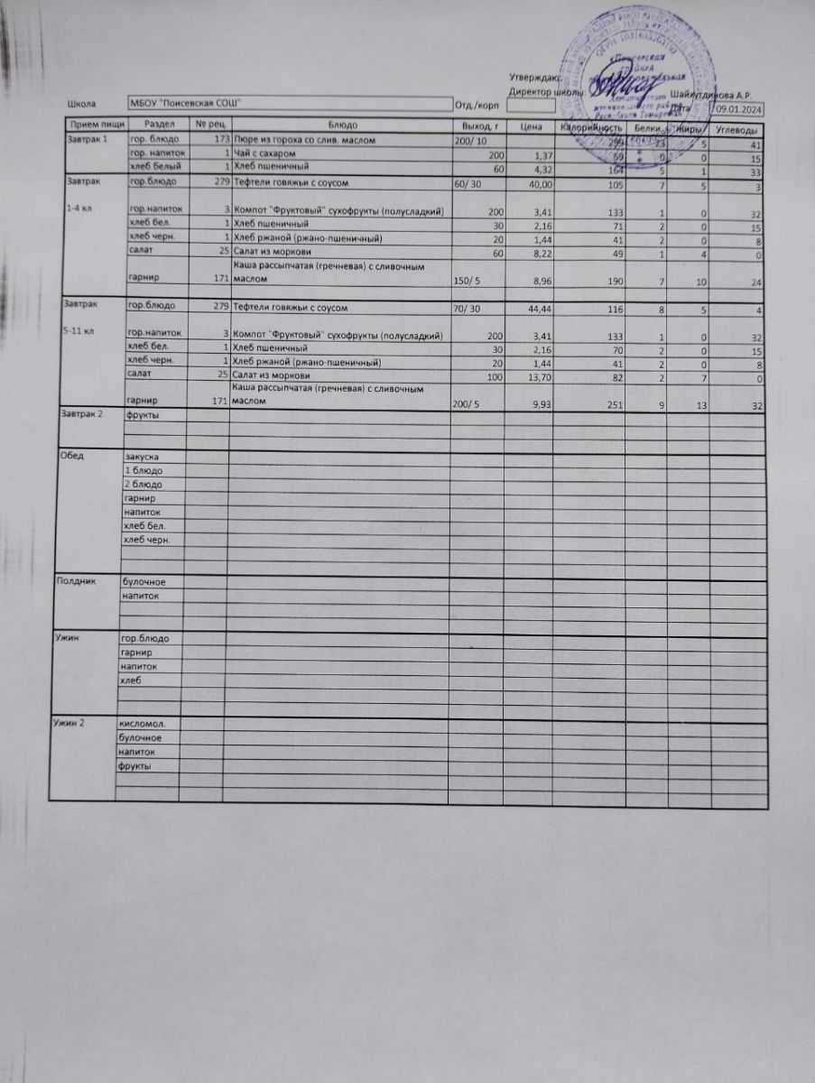 Ежедневное меню/Көндәлек меню