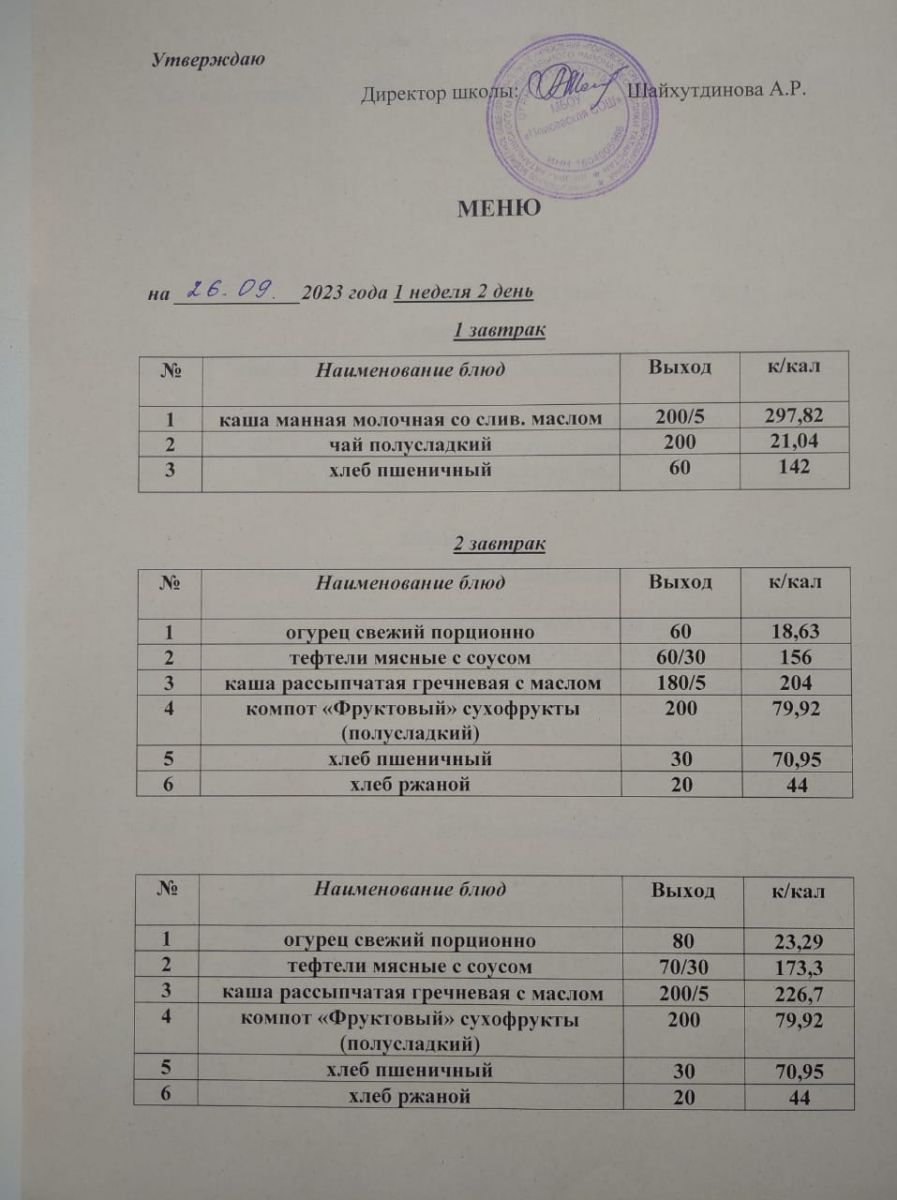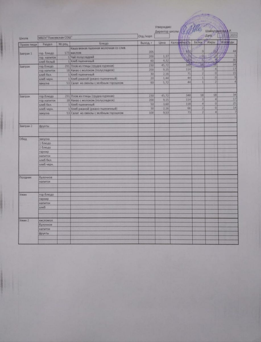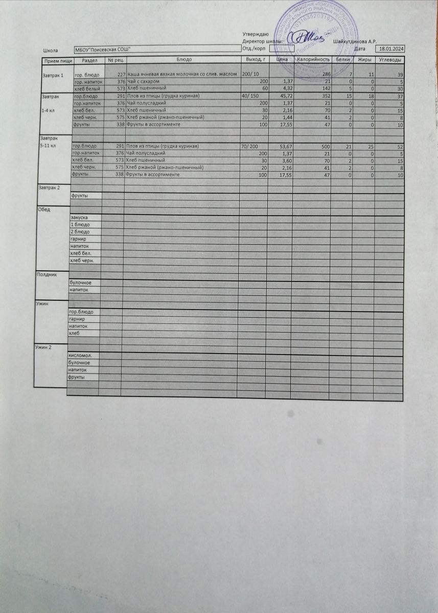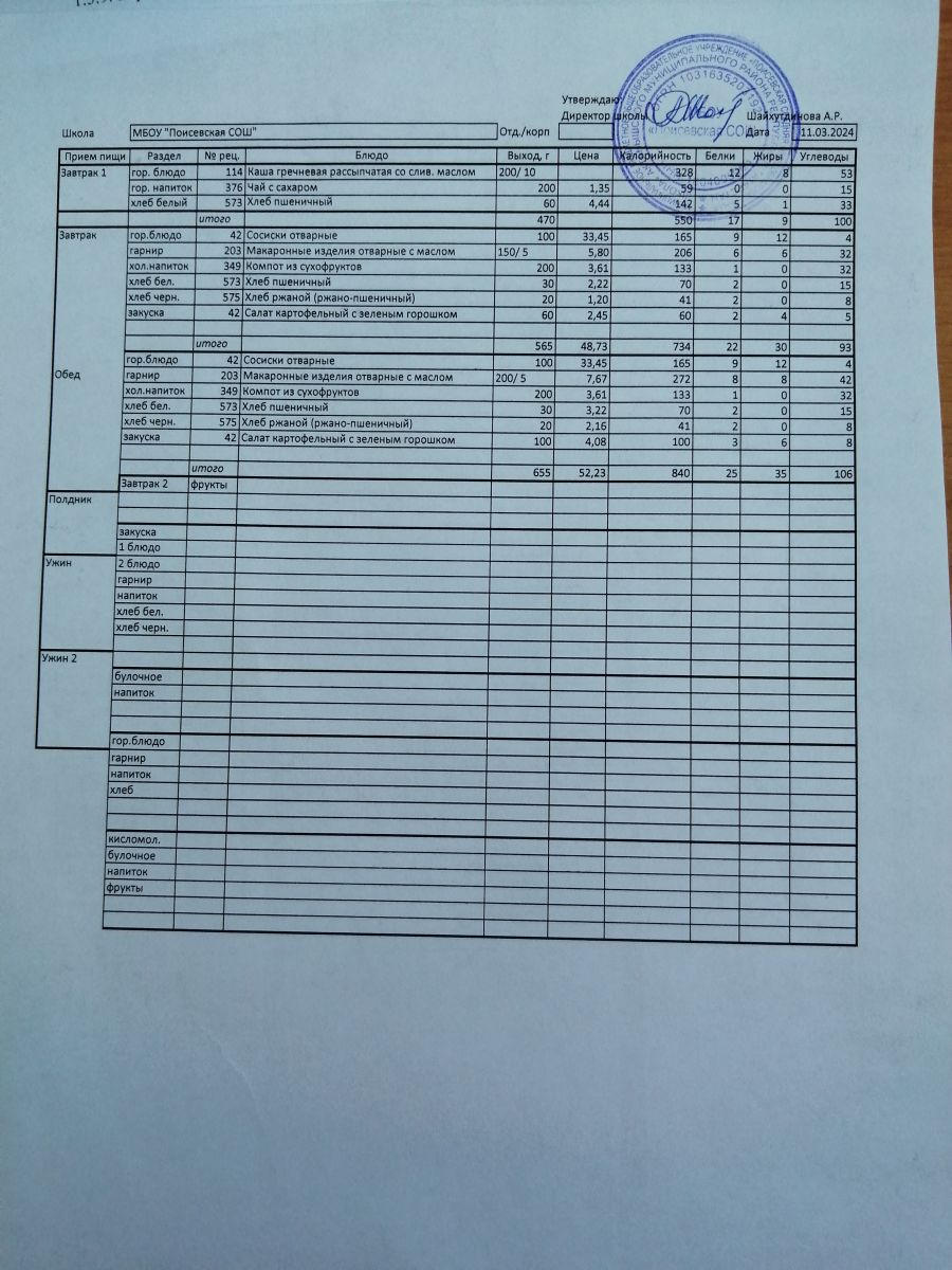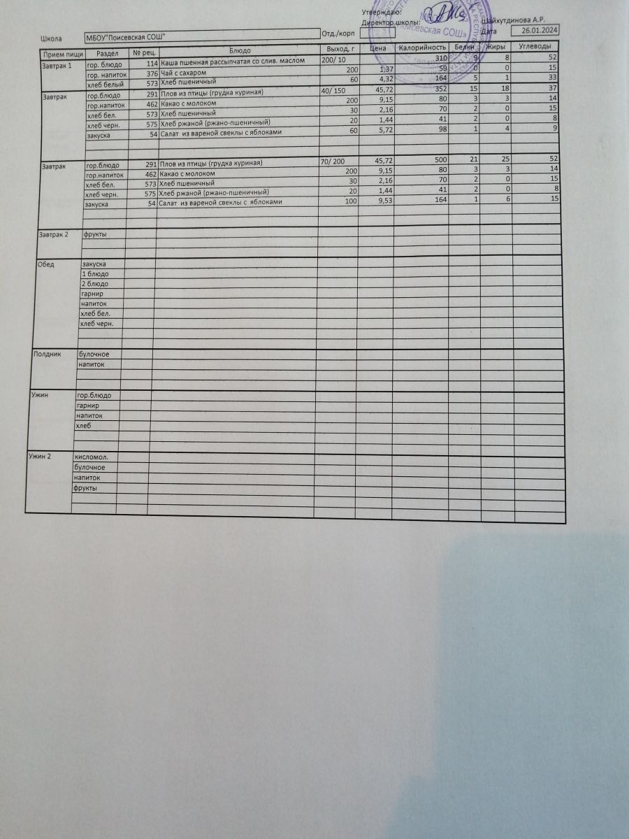 Ежедневное меню/Көндәлек меню