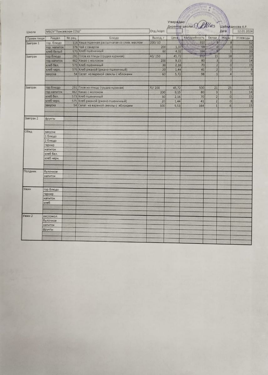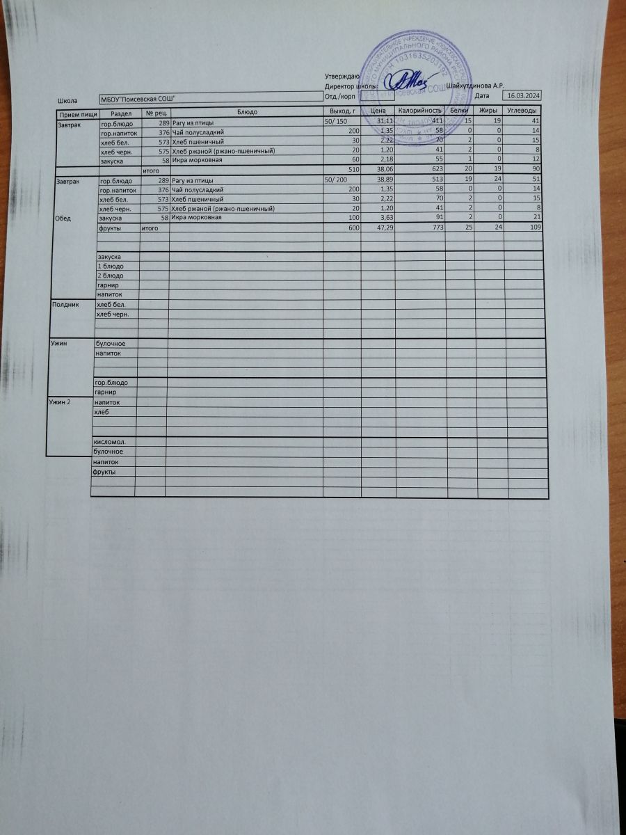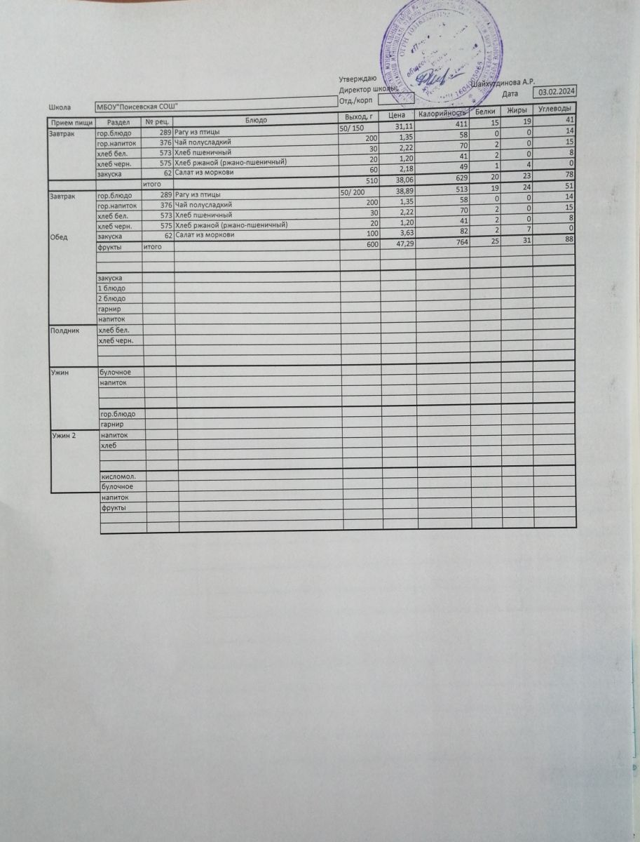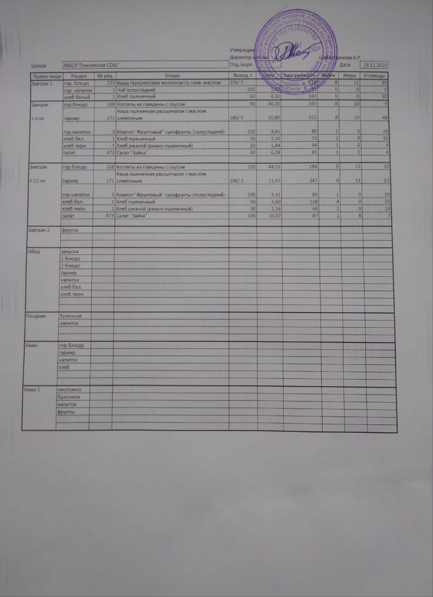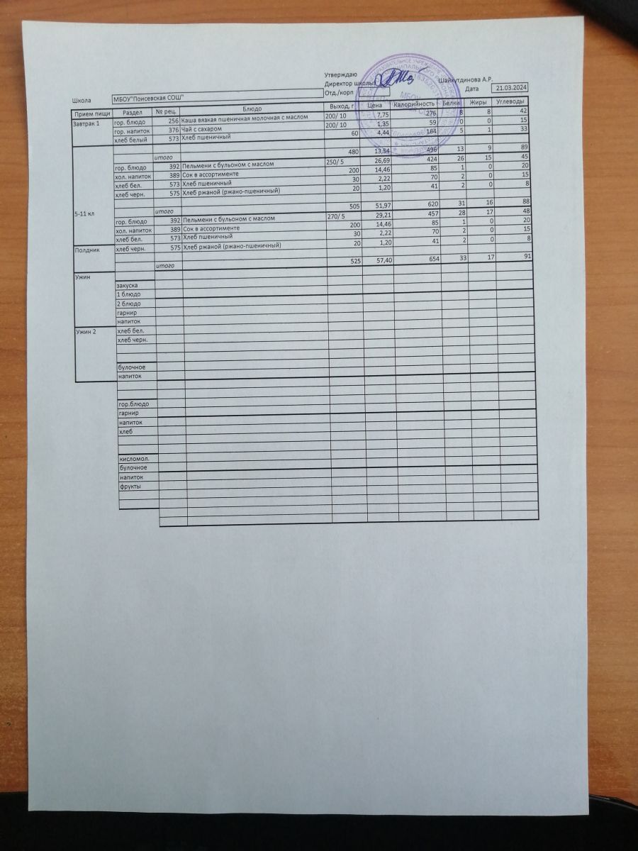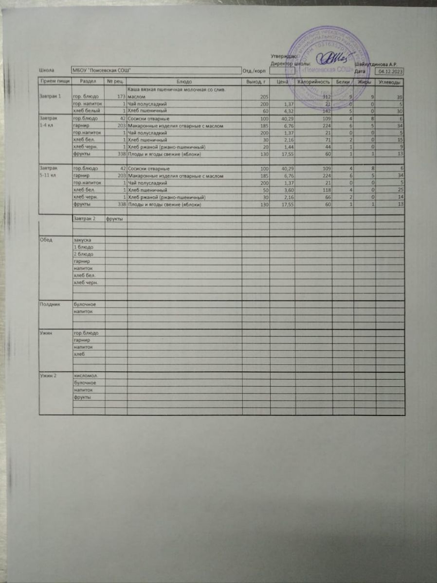 Ежедневное меню/Көндәлек меню