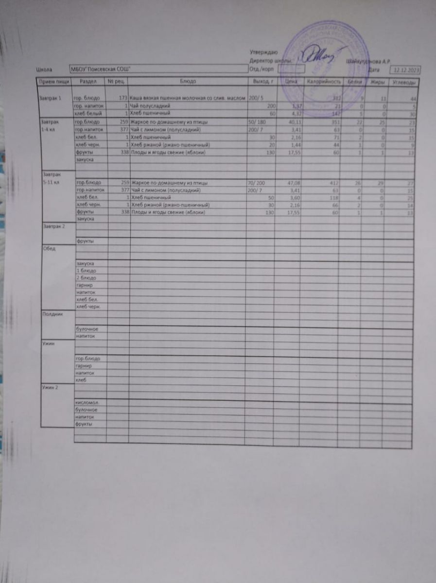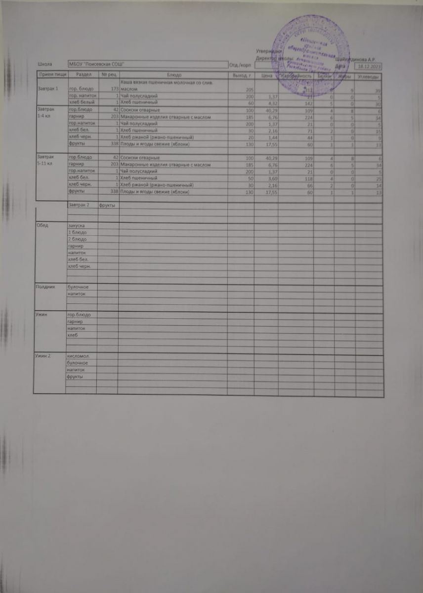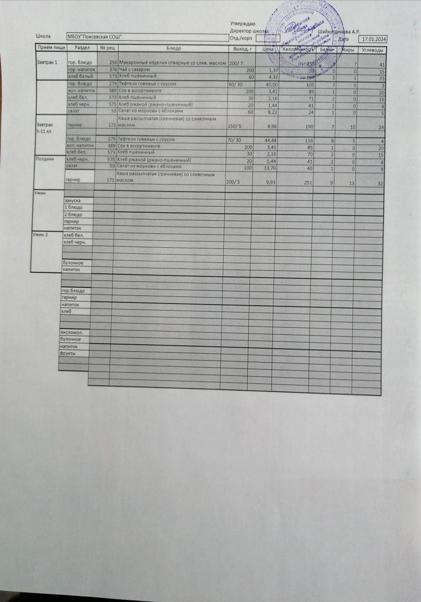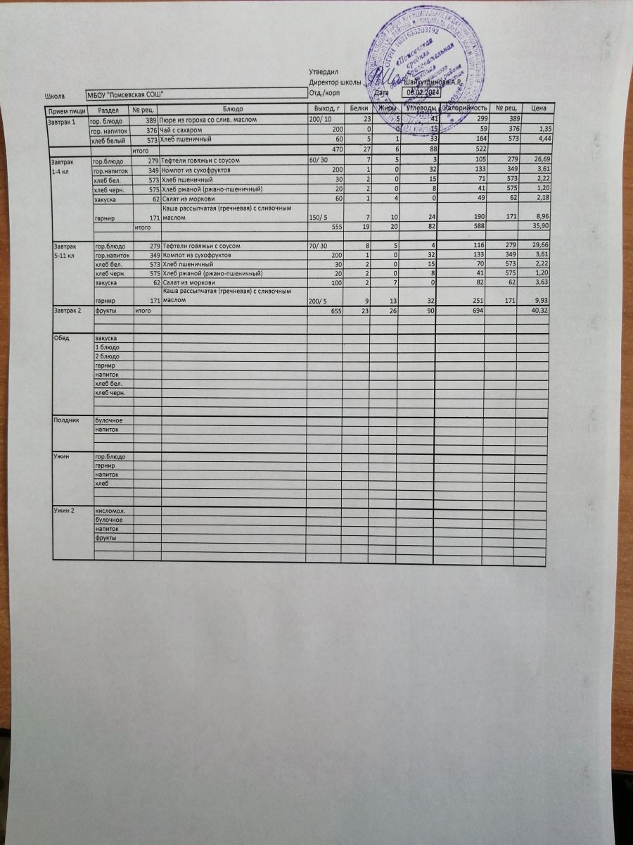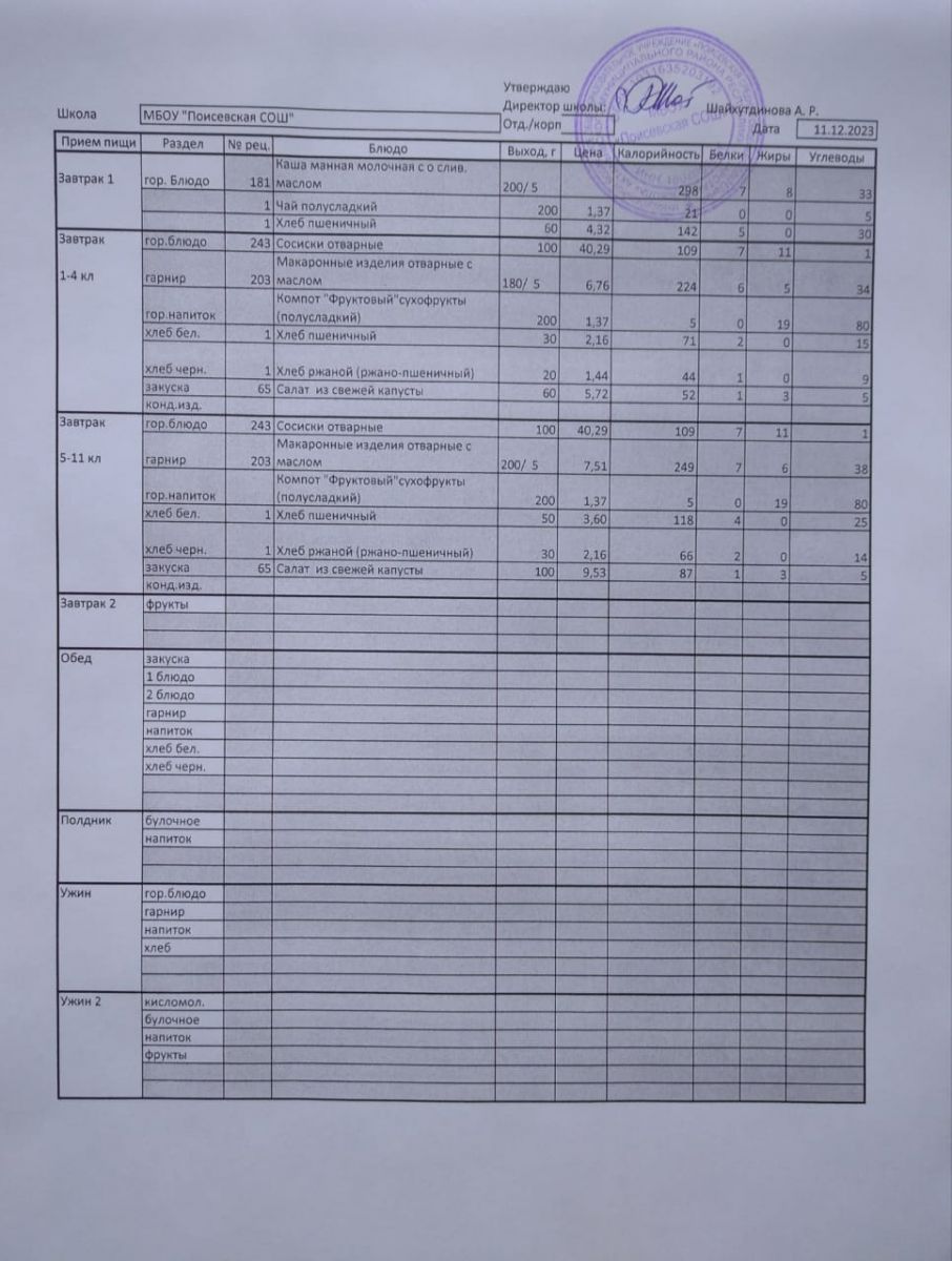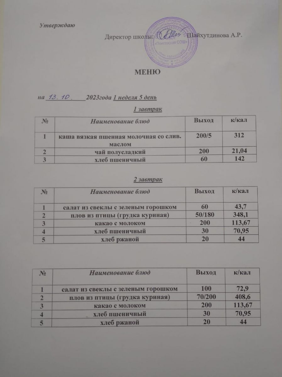 Ежедневное меню/Көндәлек меню