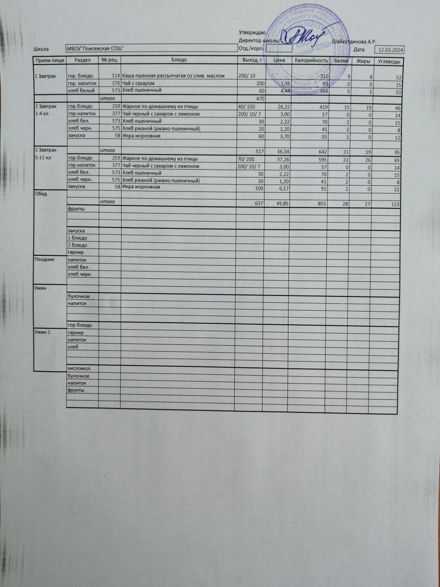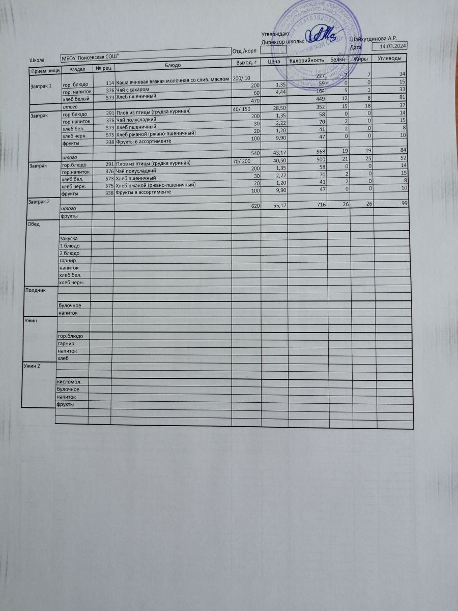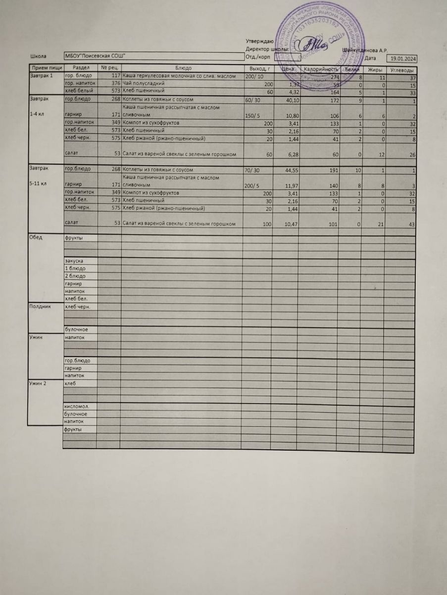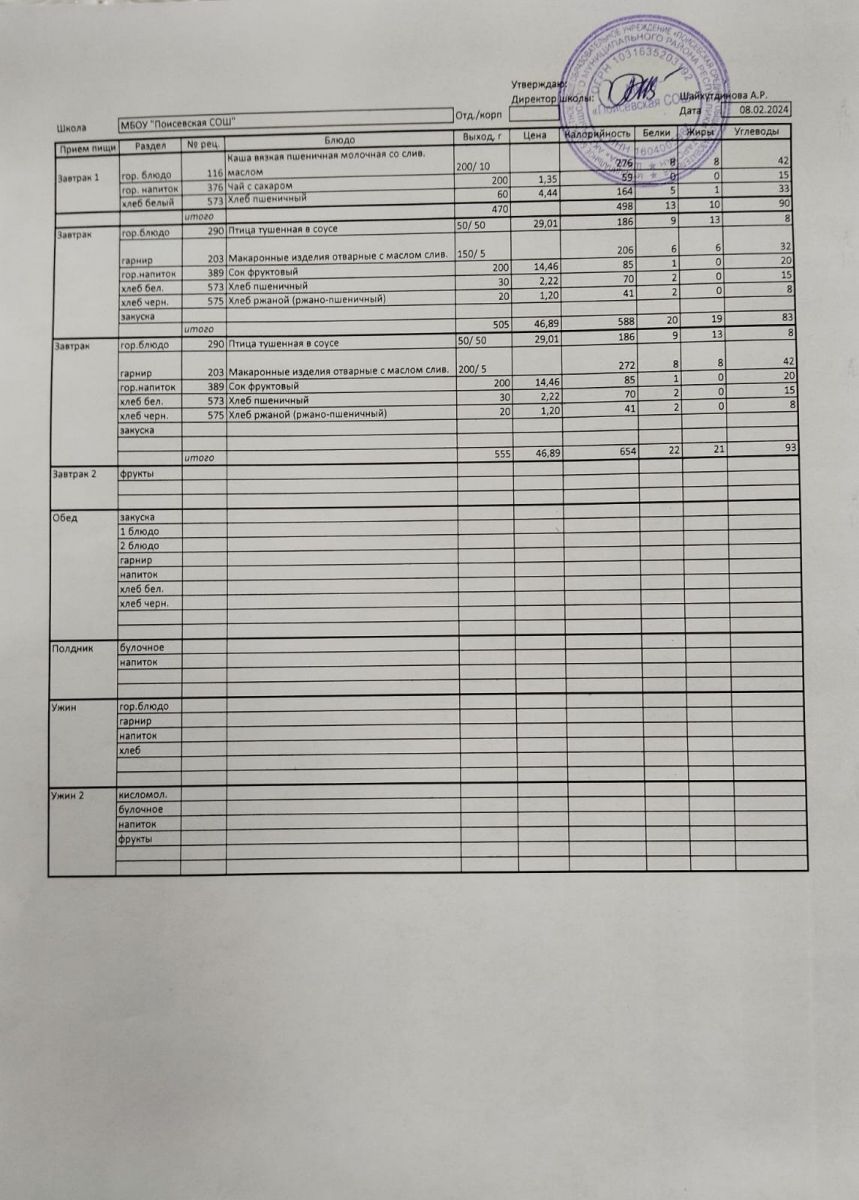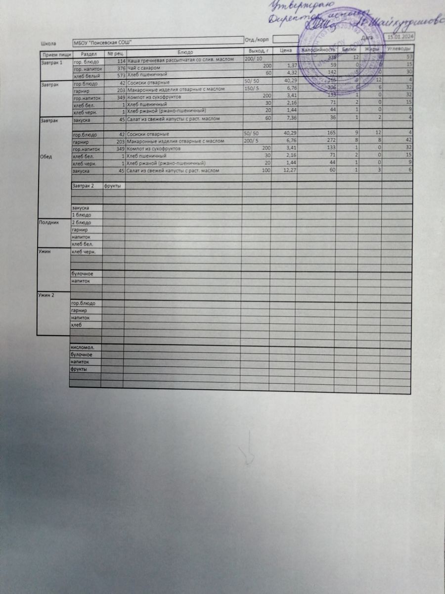 Ежедневное меню/Көндәлек меню