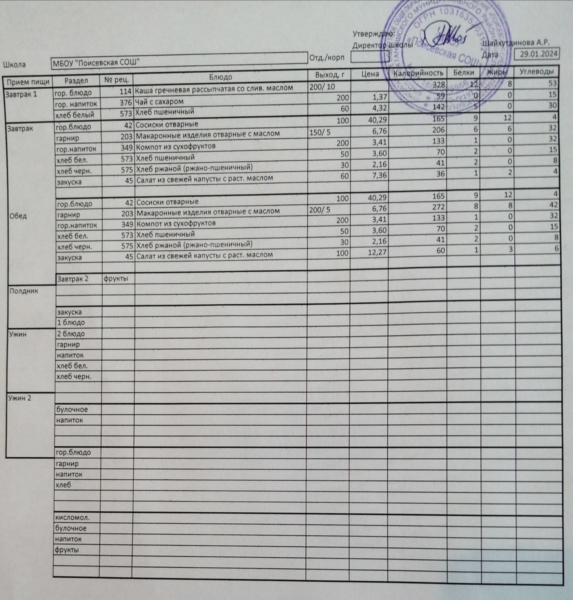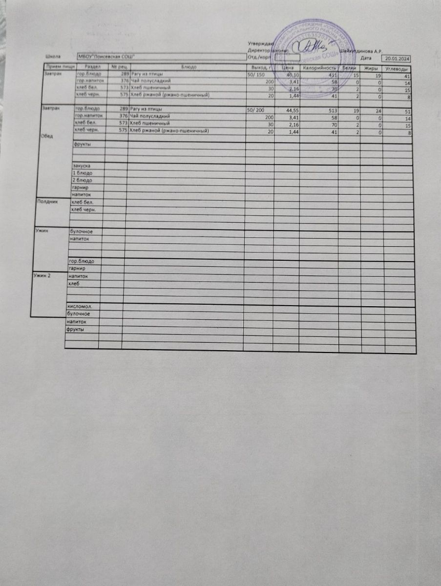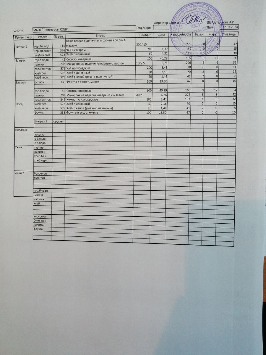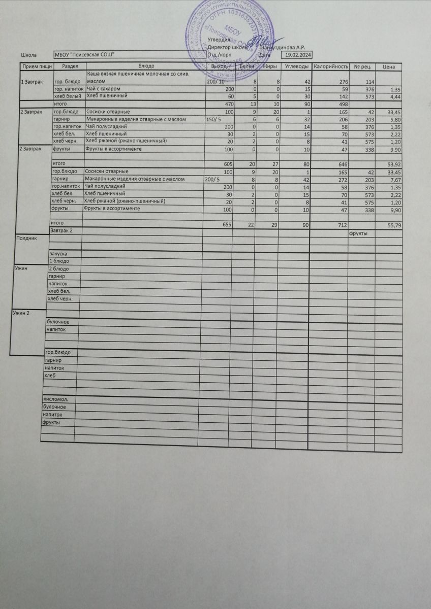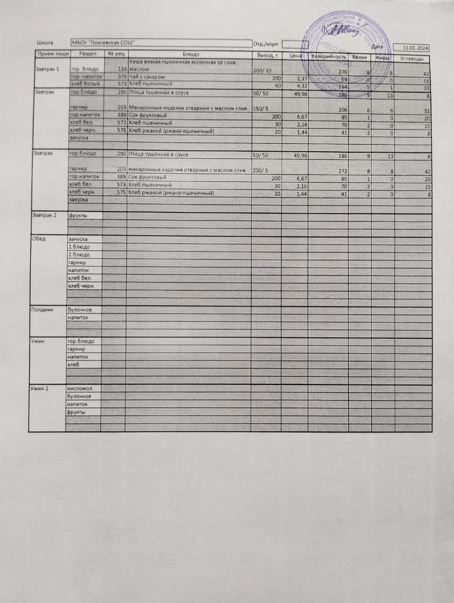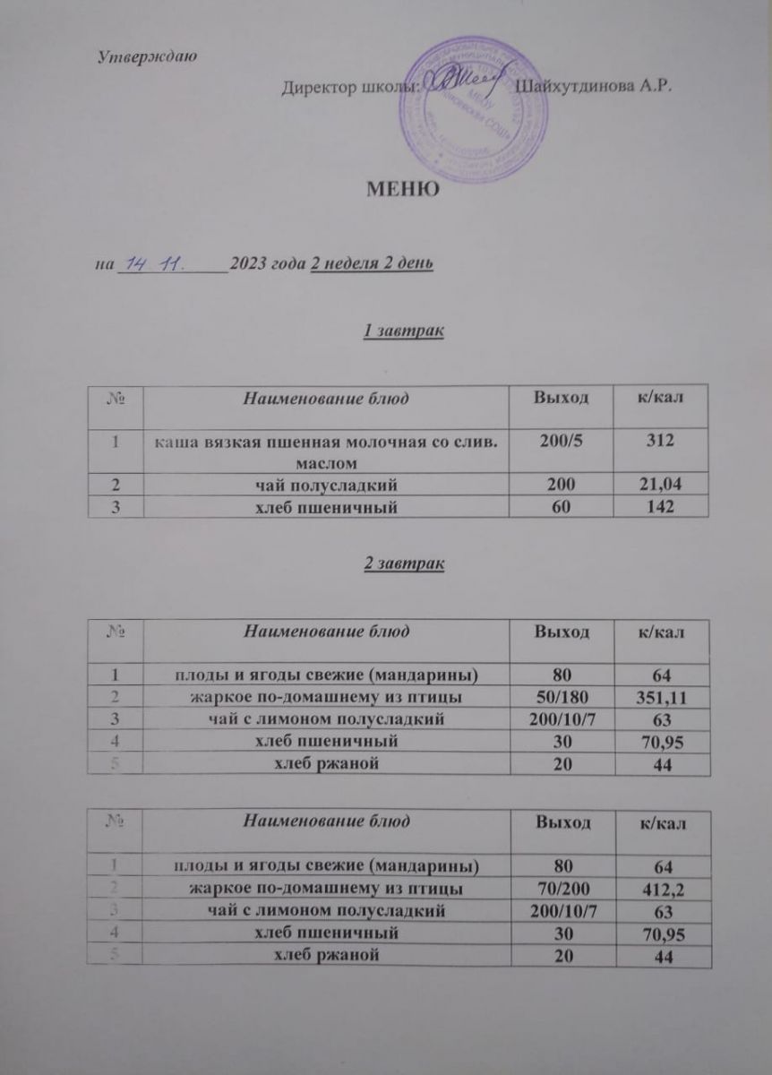 Ежедневное меню/Көндәлек меню