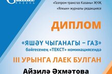 В республиканском конкурсе "Источник жизни-газ!” организуемая совместно с "Газпром трансгаз Казань" ученица 8 класса МБОУ «Аккузовская ООШ» Ахметова Айзиля заняла III место в номинации “Текст”. Руководитель: Гарипова Розалия Данисовна. Поздравляем!