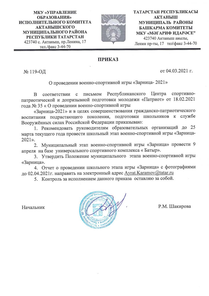 Приказ Министерства образования и науки Республики Татарстан № под-385/21 от 19.03.2021